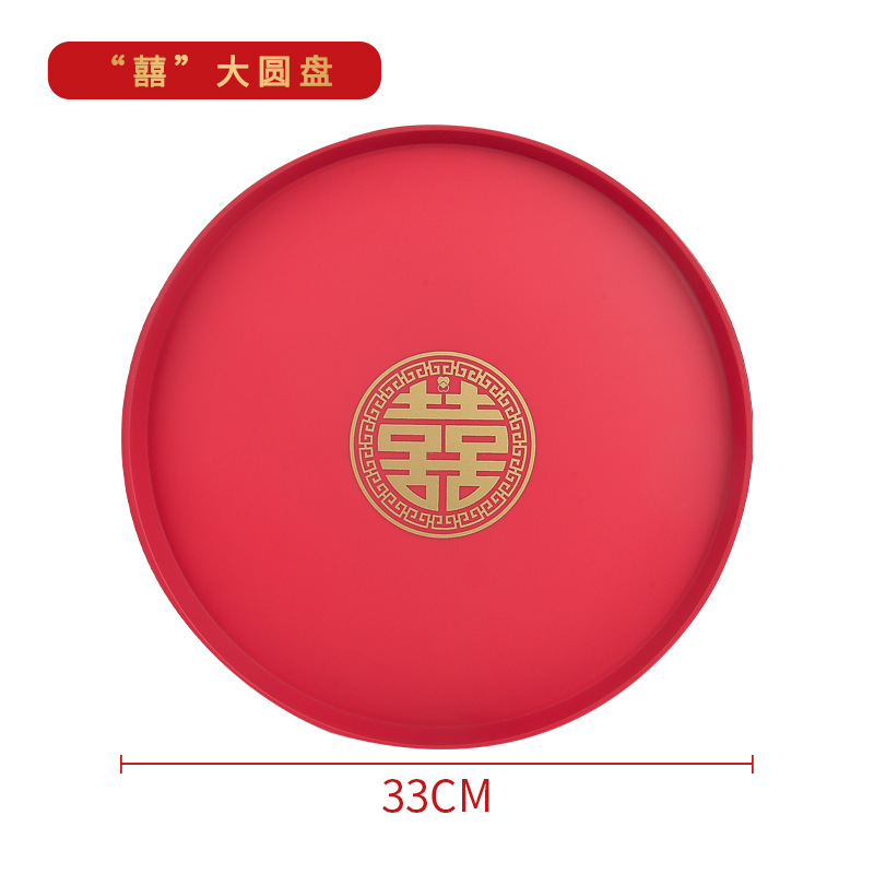웨딩 해피 플레이트 웨딩 트레이 라운드 해피 레드 플레이트 신부 차 사탕 접시 플라스틱 중국 말린 과일 접시