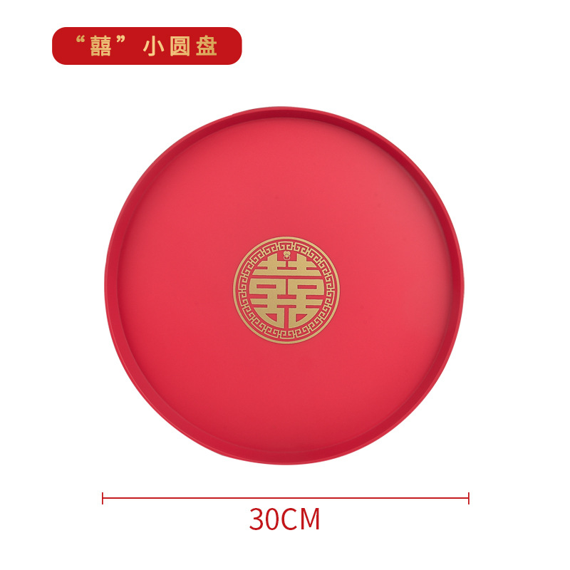 웨딩 해피 플레이트 웨딩 트레이 라운드 해피 레드 플레이트 신부 차 사탕 접시 플라스틱 중국 말린 과일 접시스토어 가기