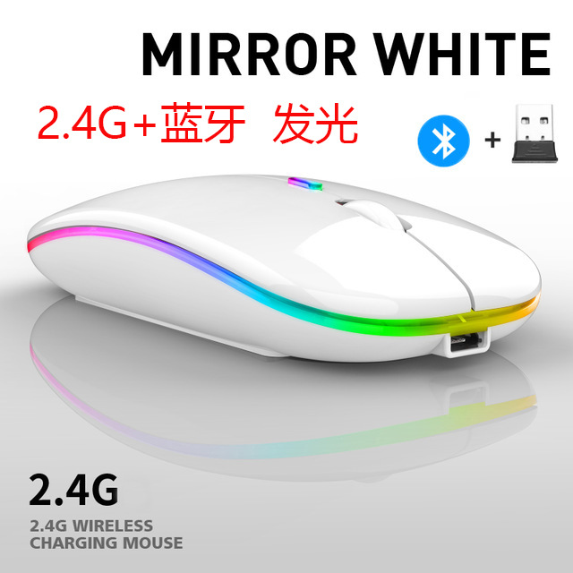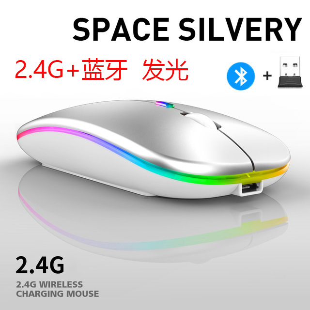 多版本可选择:全部为充电款式全部静音, 有2.4G版本选择,和2.4G+蓝牙双模式版本选择,发光和不发光版本选择