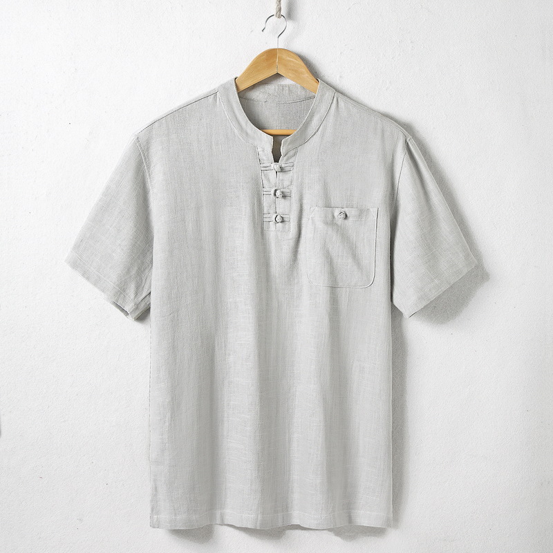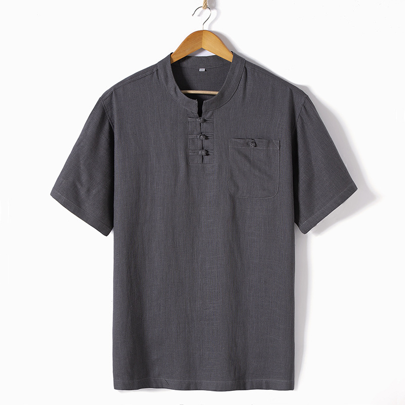 중년 및 노인 남성 여름 신작 린넨 반팔 티셔츠 남성 대형 면 및 린넨 티셔츠 중국 스타일 아빠 탑스토어 가기