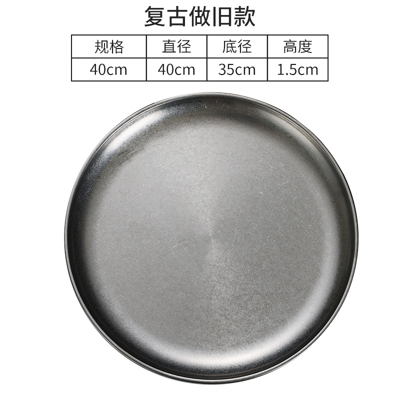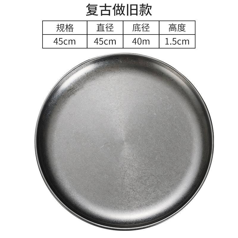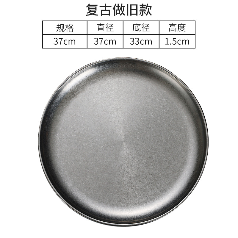 한국식 레트로 디스크 스테인레스 스틸 고민 얕은 접시 디저트 케이크 플레이트 뼈 플레이트 카페 트레이스토어 가기