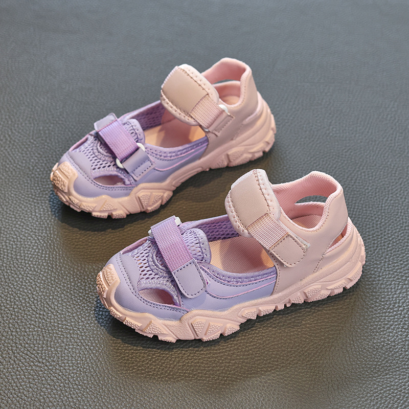 여자 샌들 어린이 2025 새로운 여름 단일 메쉬 프레임 신발 통기성 중대형 어린이 스포츠 중공 해변 신발