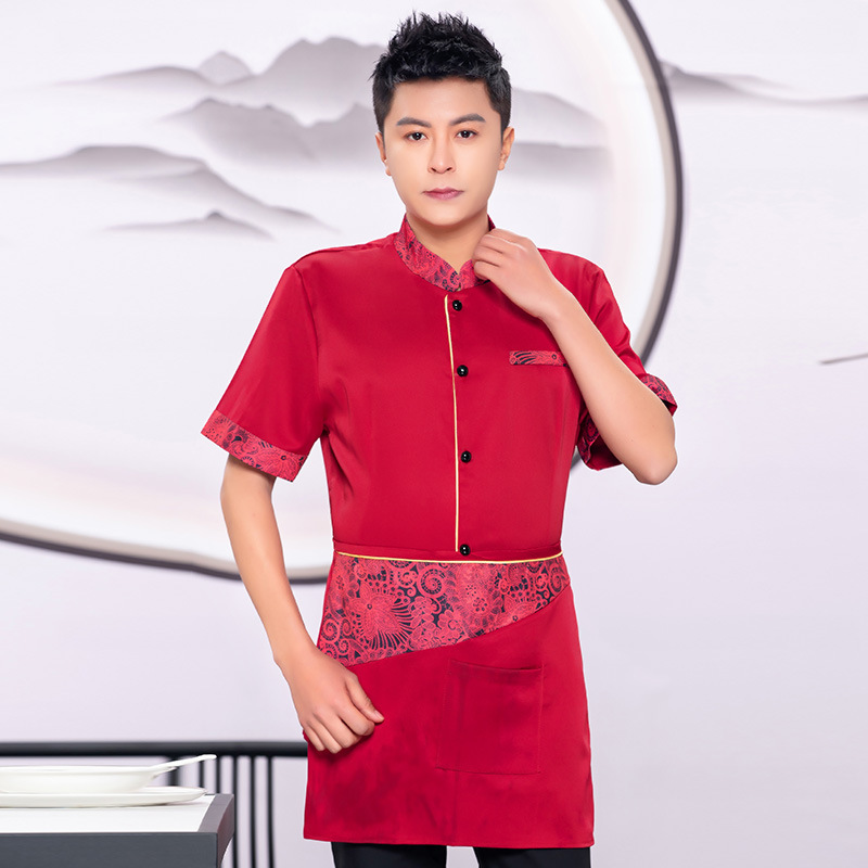 레스토랑 냄비 가게 작업복 남녀 여름 옷 호텔 레스토랑 취사 참석자 작업복 자수 반팔 새로운 스타일