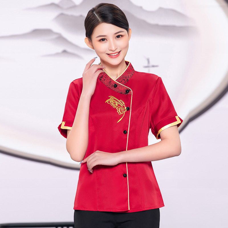 레스토랑 냄비 가게 작업복 남녀 여름 옷 호텔 레스토랑 취사 참석자 작업복 자수 반팔 새로운 스타일스토어 가기