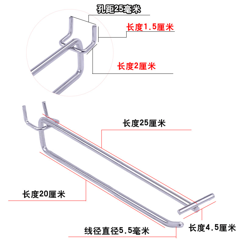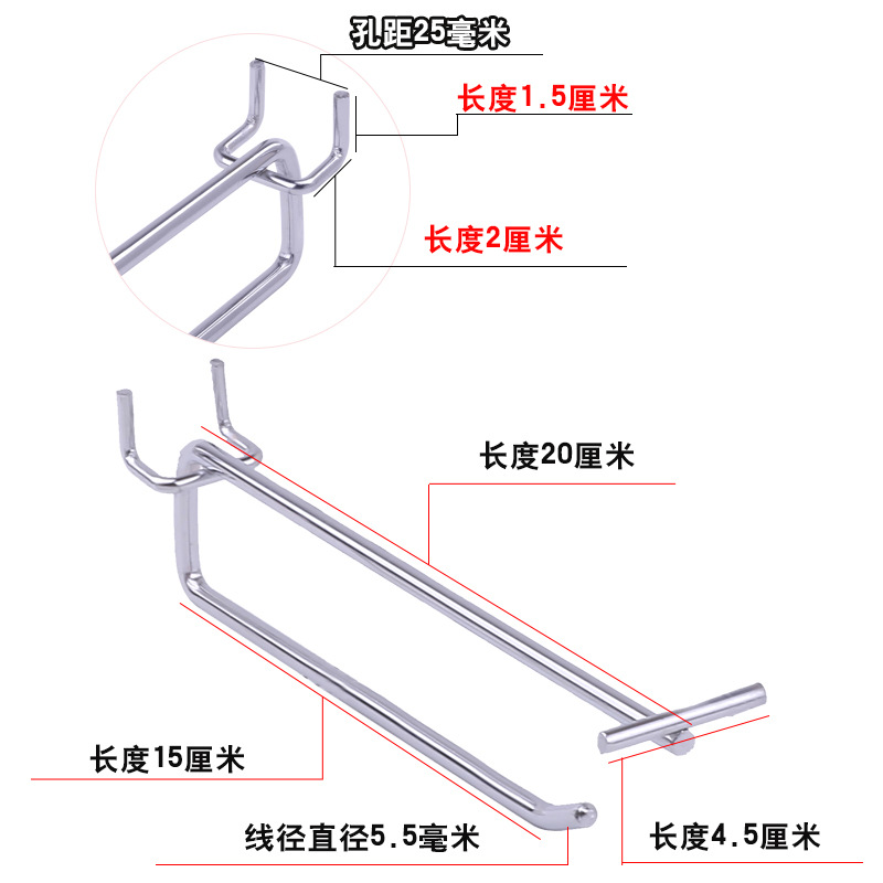 • 구멍 2.5 구멍판 더블 훅 20cm (두께 5.5)