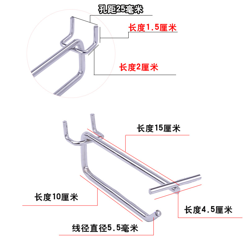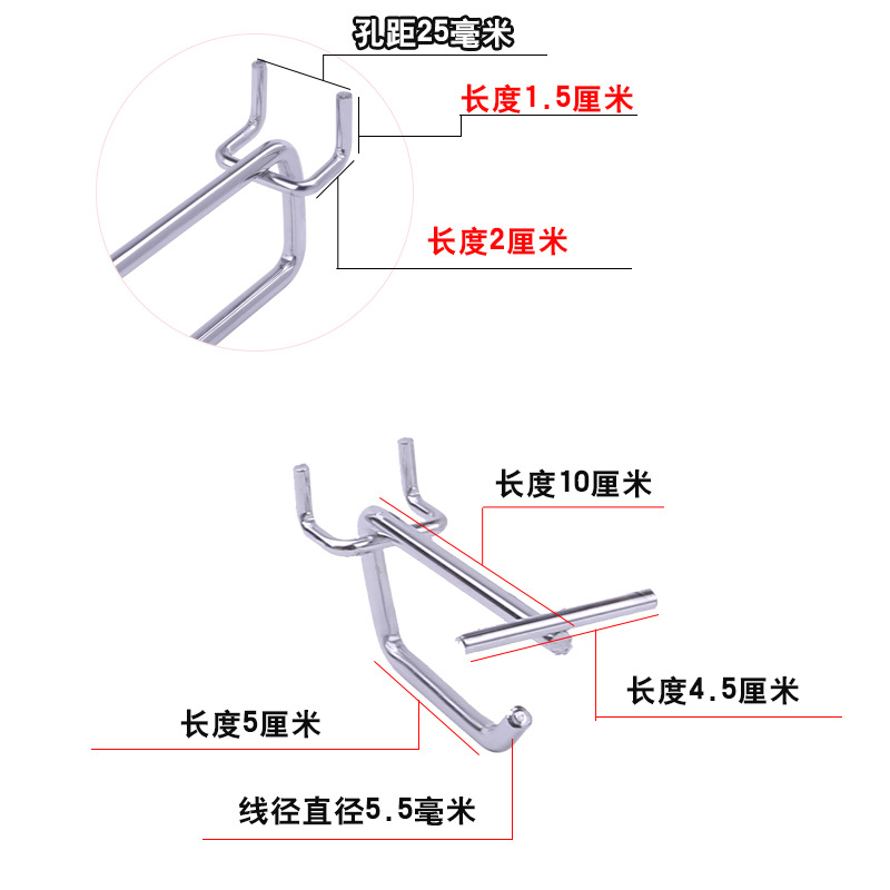 • 구멍 2.5 구멍판 더블 훅 10cm (두께 5.5)