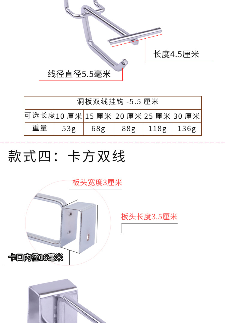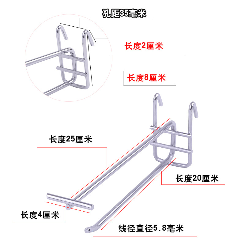 슈퍼마켓 선반 디스플레이 랙 더블 라인 후크 보석 휴대 전화 액세서리 후크 그리드 슬롯 보드 카드 사각 튜브 구멍 보드 후크