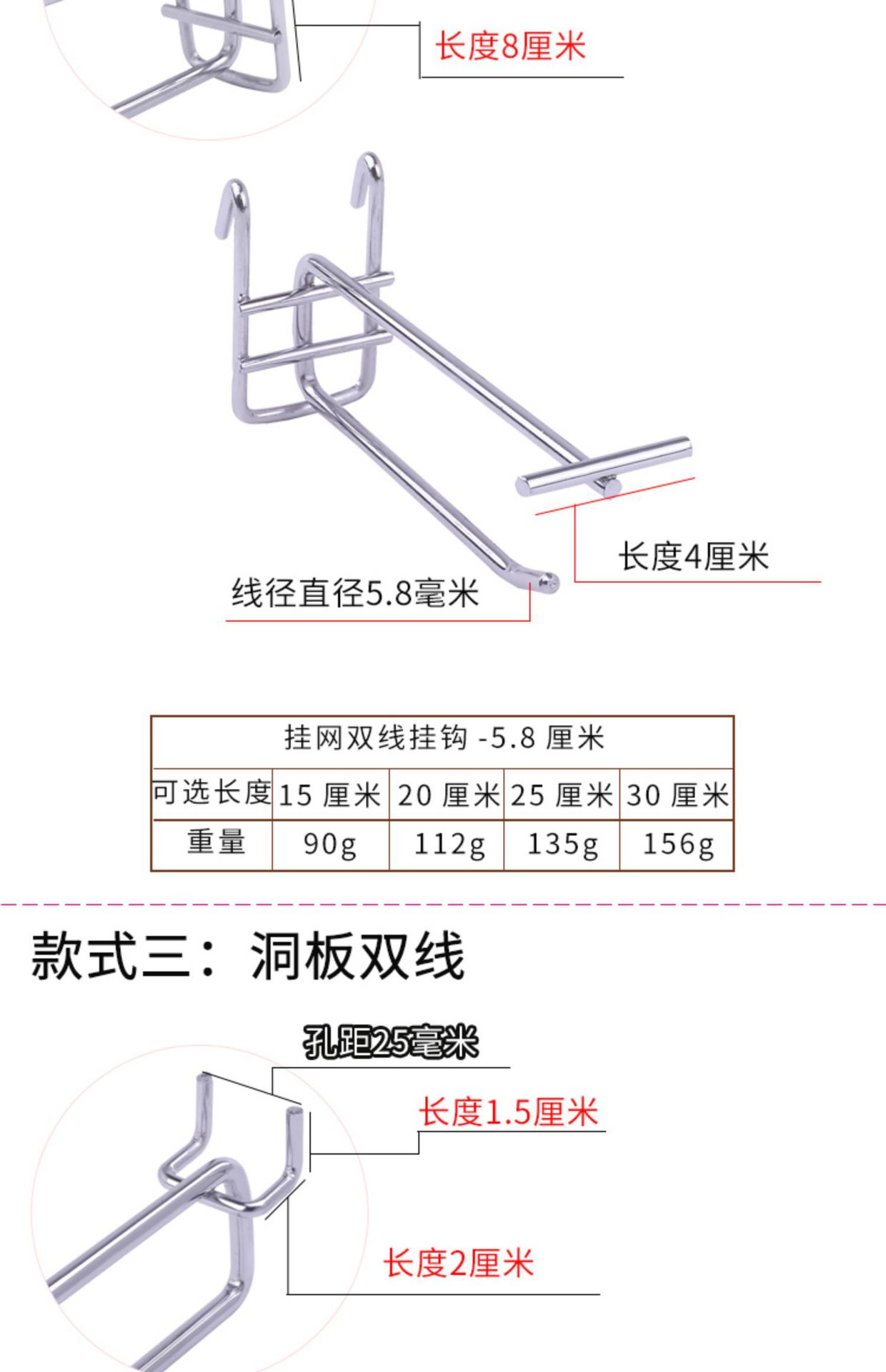 • 구멍 2.5 홀 버전 더블 후크 15cm (두께 5.5)
