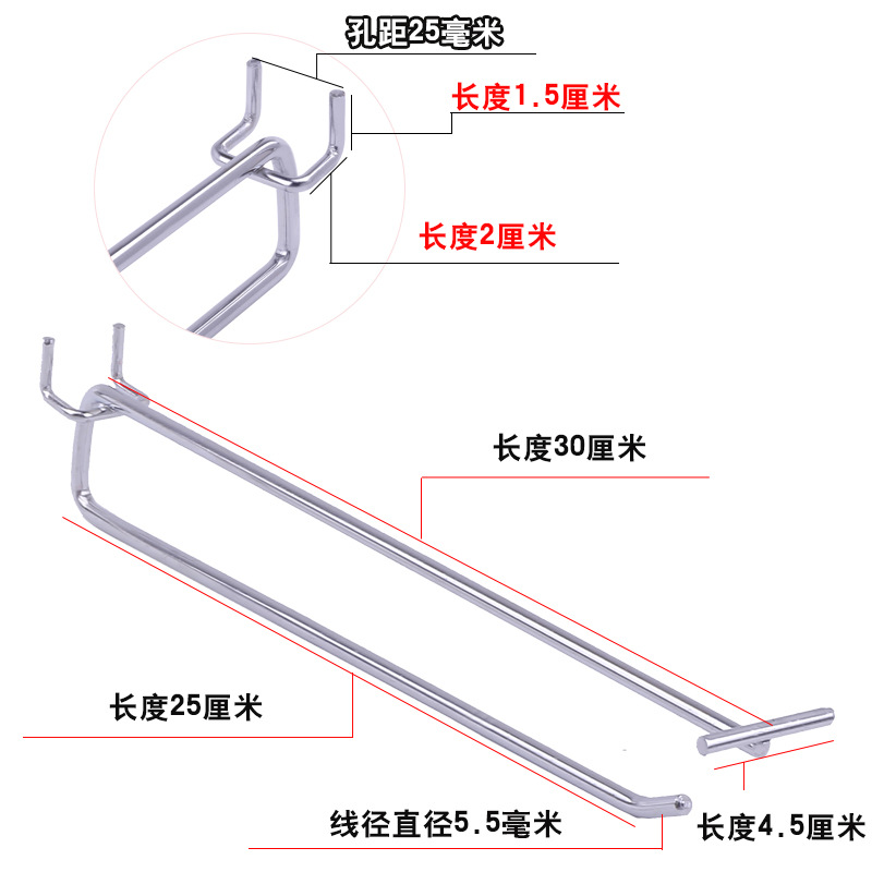 • 구멍 2.5 구멍판 더블 훅 30cm (두께 5.5)