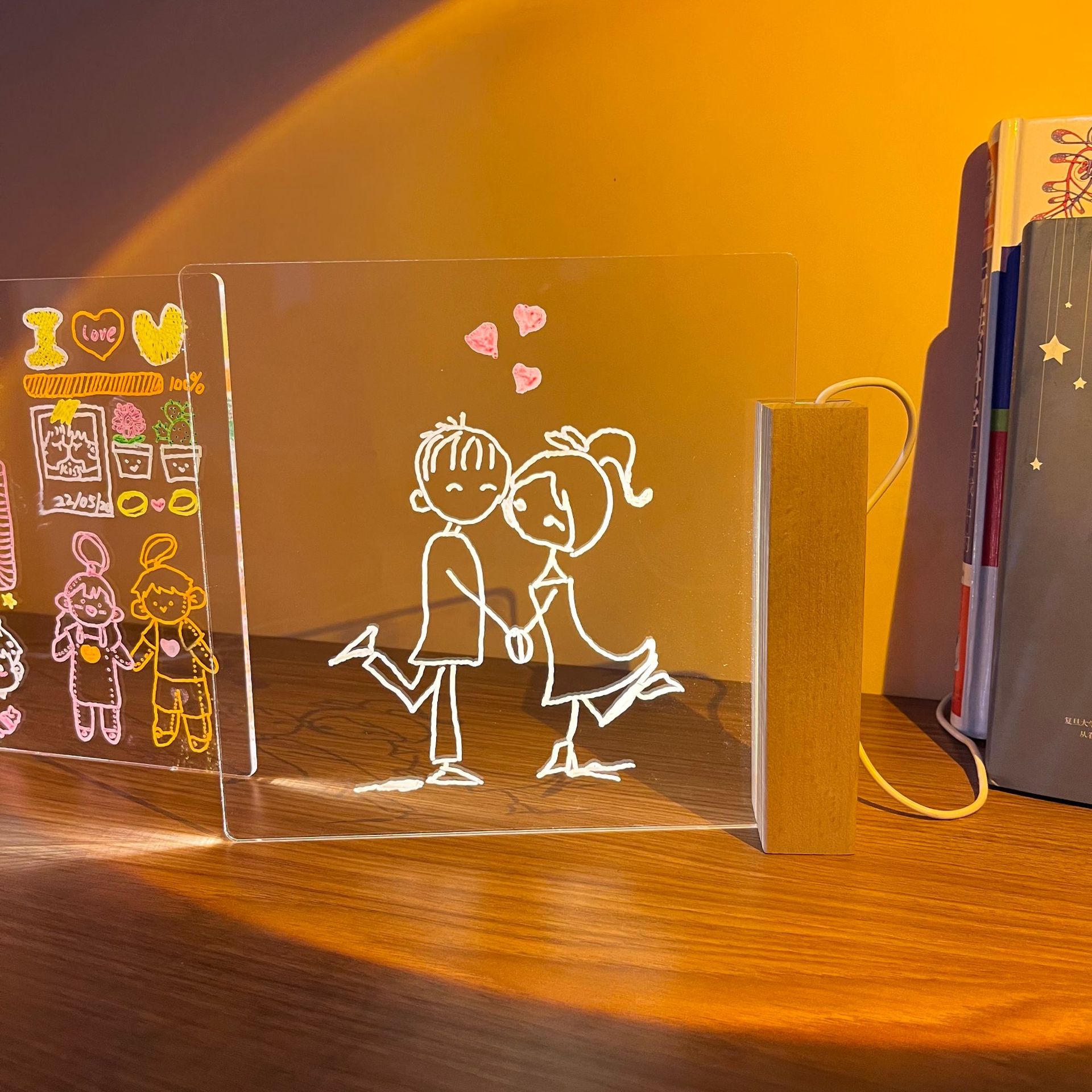 DIY 지울 수있는 투명 아크릴 필기 발광 형광 보드 led 화이트 보드 필기 보드 칠판 메시지 보드