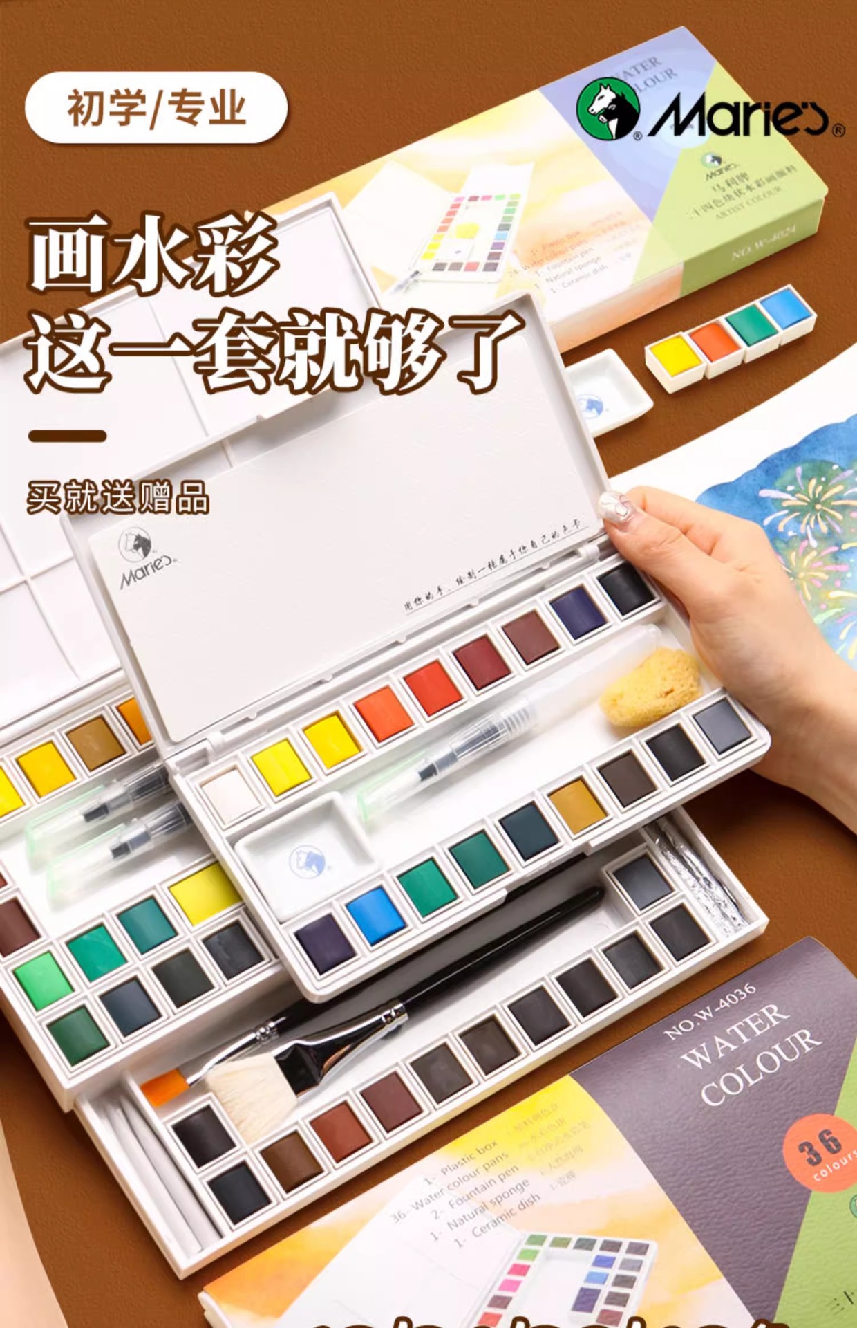 • 말리 36색 블록 수채화 물감 (W-4036)