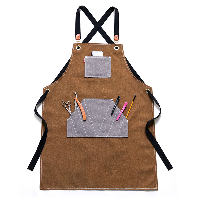 데님 앞치마 우유 차 이발소 미용사 인쇄 로고 주방 레스토랑 베이킹 바 바리 스타 작업 옷 여성