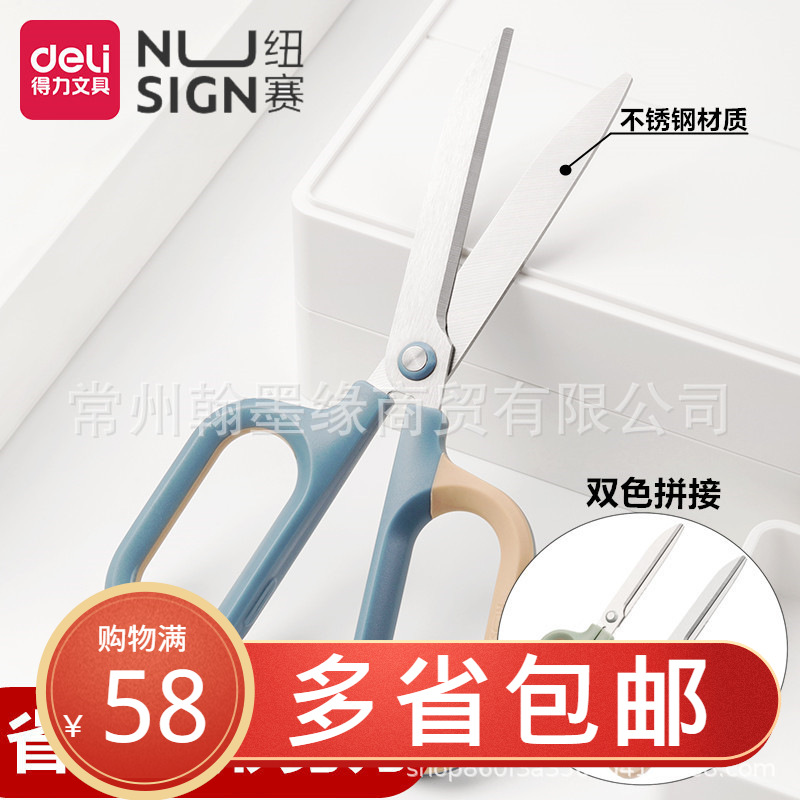 델리 가위 새로운 플러그 곡선 스테인레스 스틸 어린이 사무실 문구 가위 가정용 다기능 날카로운 가위스토어 가기