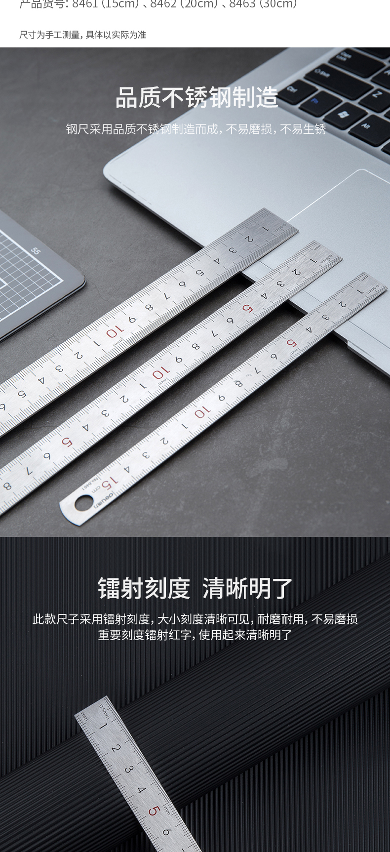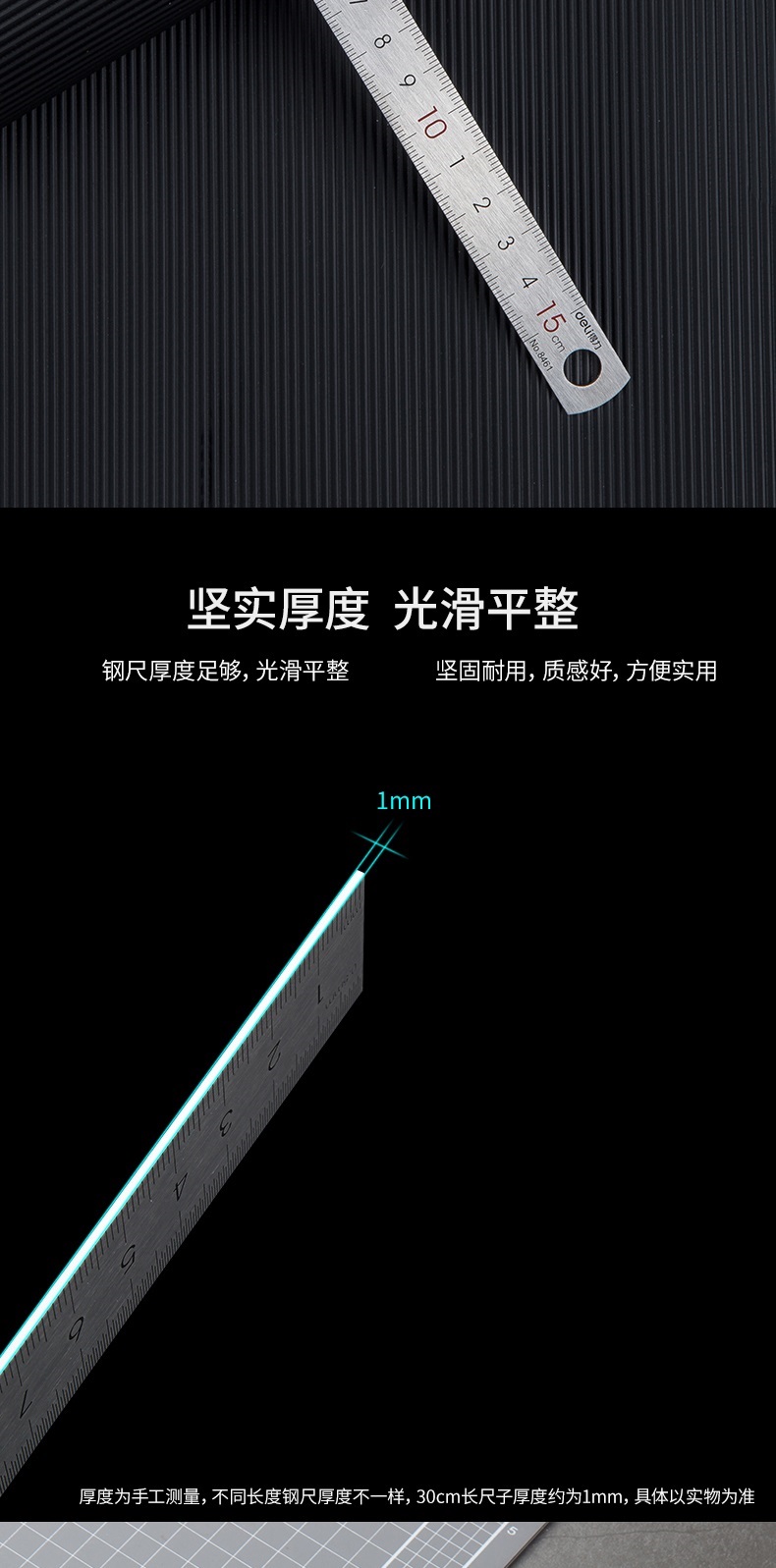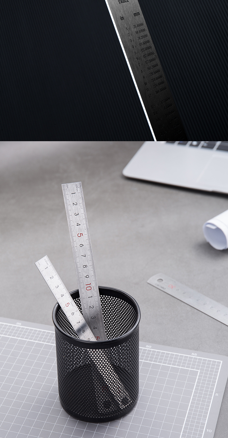 델리 8461 두꺼운 강철 자 15cm 스케일 cm 자 그리기 강철 자 사무실 학생 선 강철 자