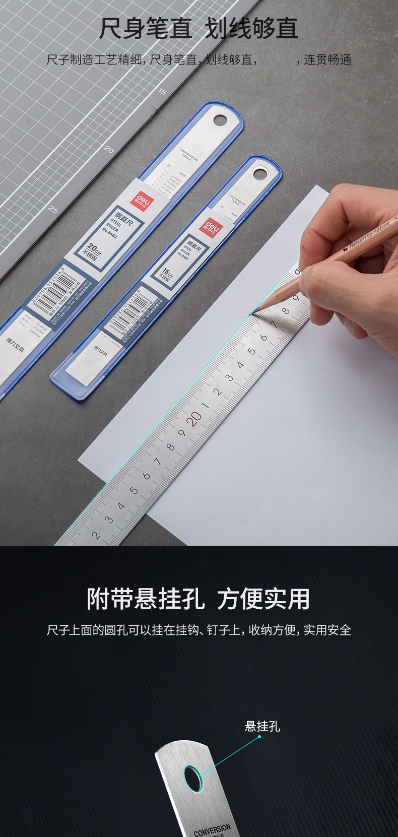 델리 8461 두꺼운 강철 자 15cm 스케일 cm 자 그리기 강철 자 사무실 학생 선 강철 자스토어 가기