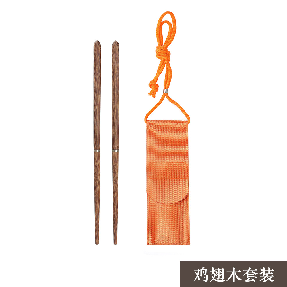 이동식 휴대용 젓가락 야외 캠핑 식기 미끄럼 방지 레드 백단향 단단한 나무 젓가락 머리를위한 간단한 바느질 젓가락