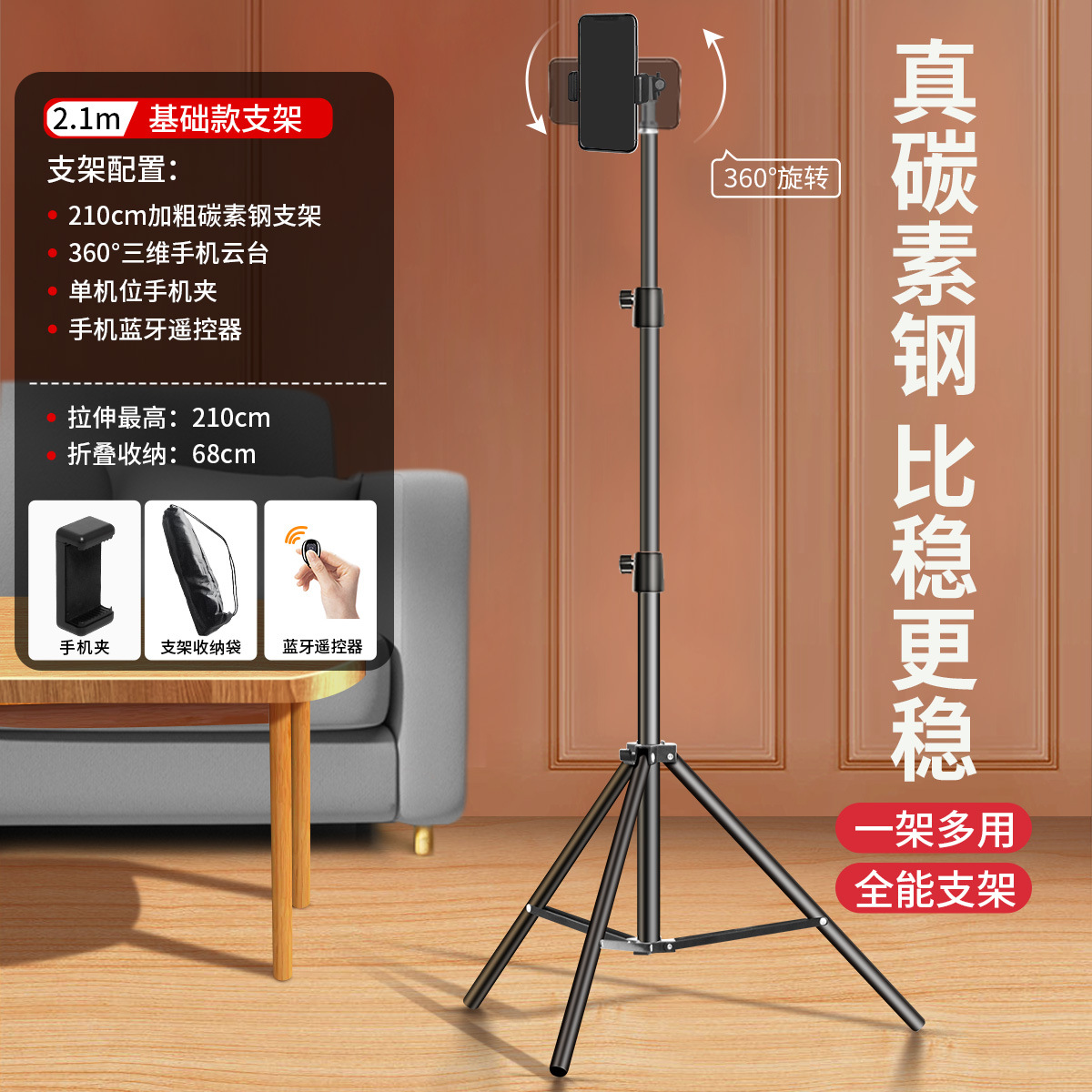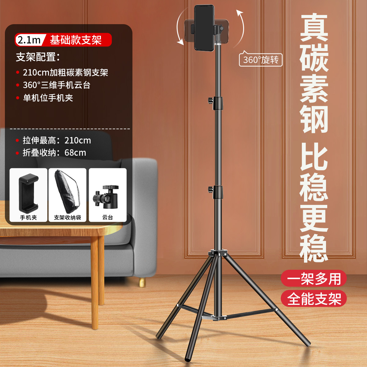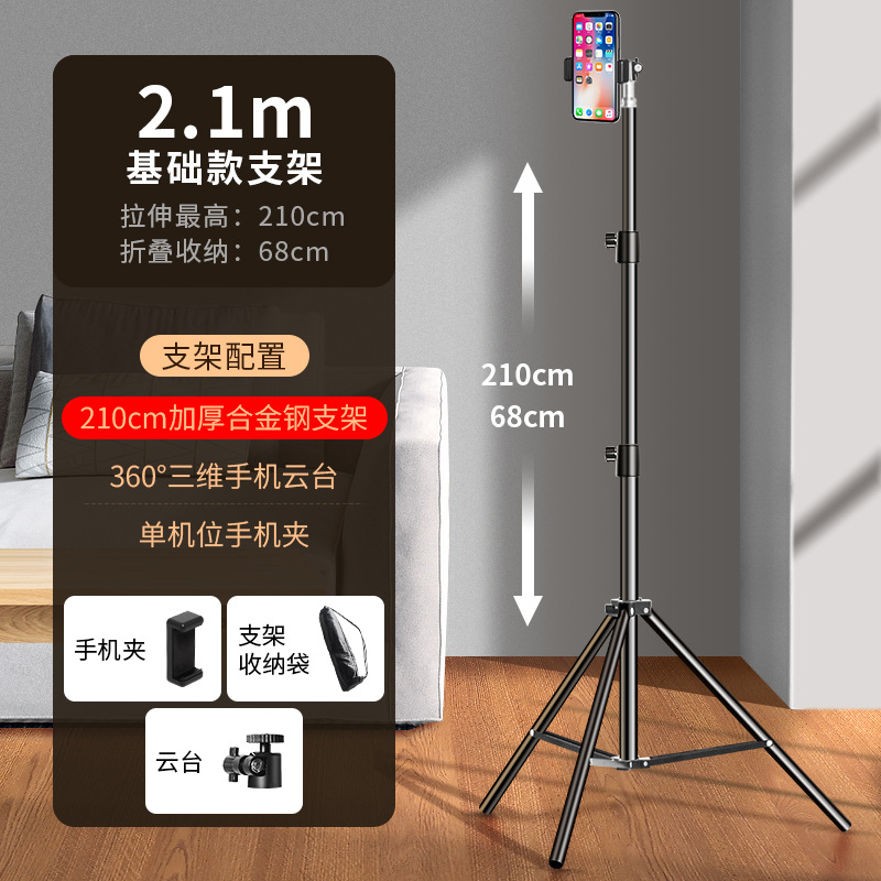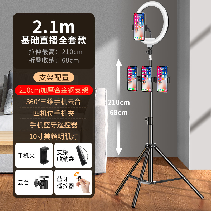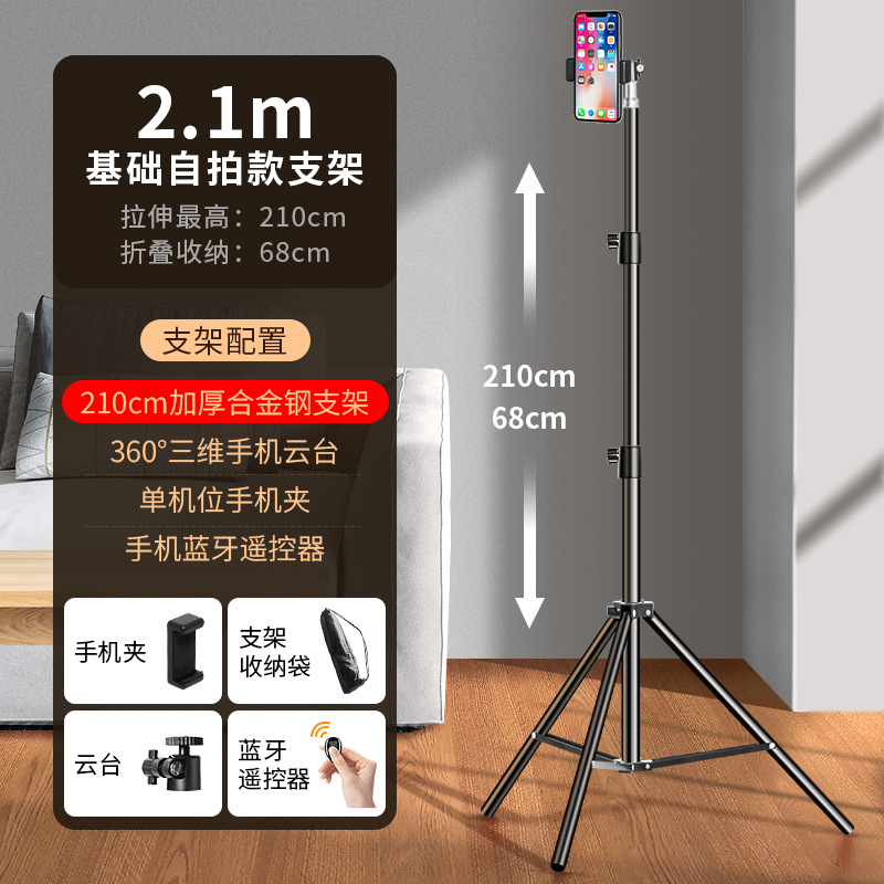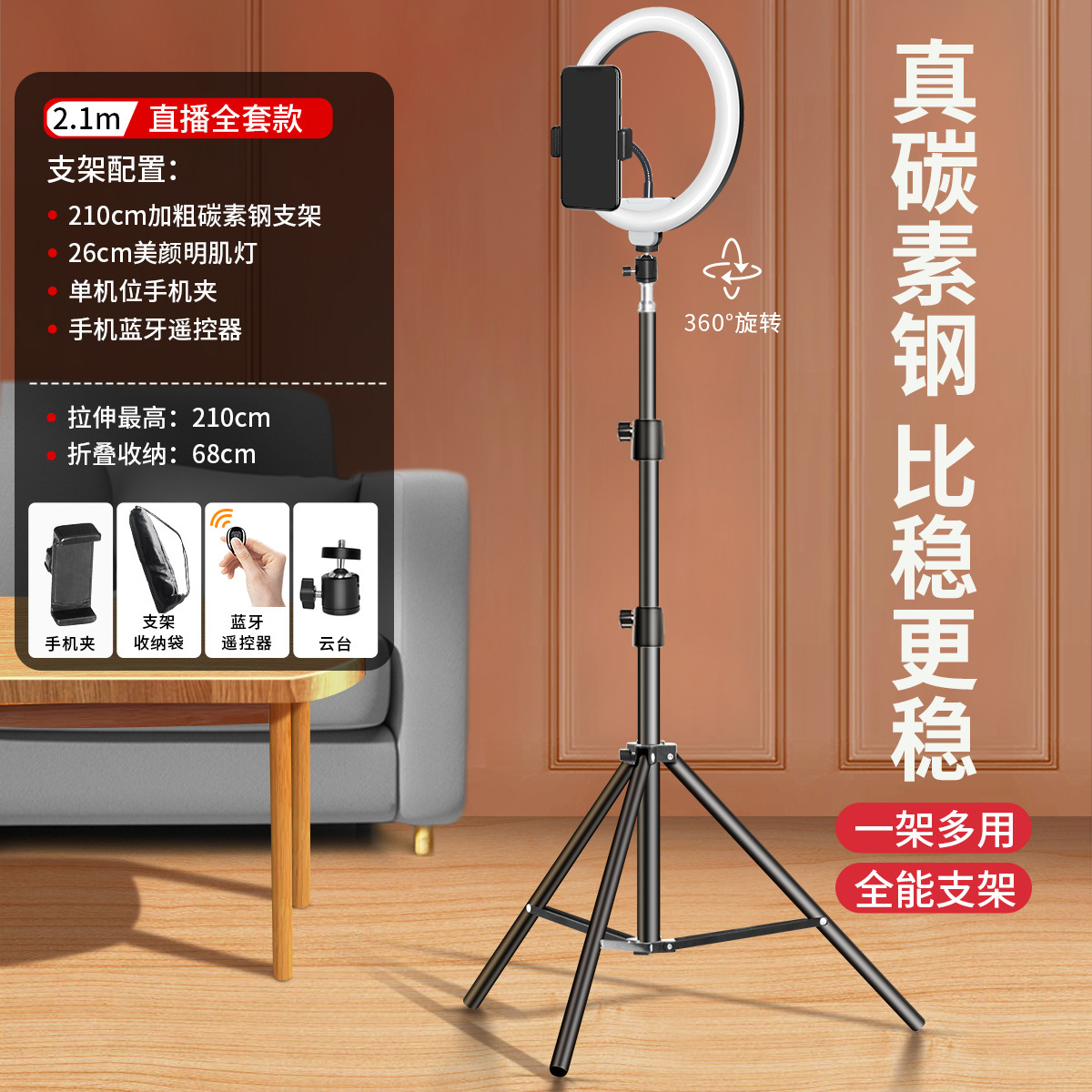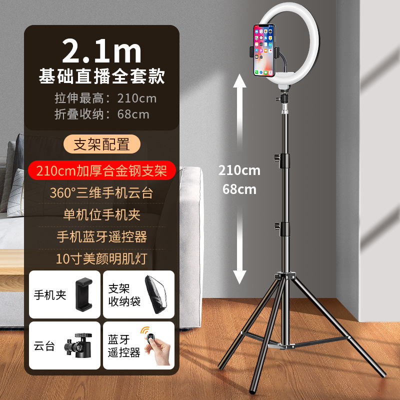 • 2.1m 두꺼운 탄소강 삼각대 [기본 + 10 인치 보조 조명 + 셀카 라이브 브래킷 전체 세트]]