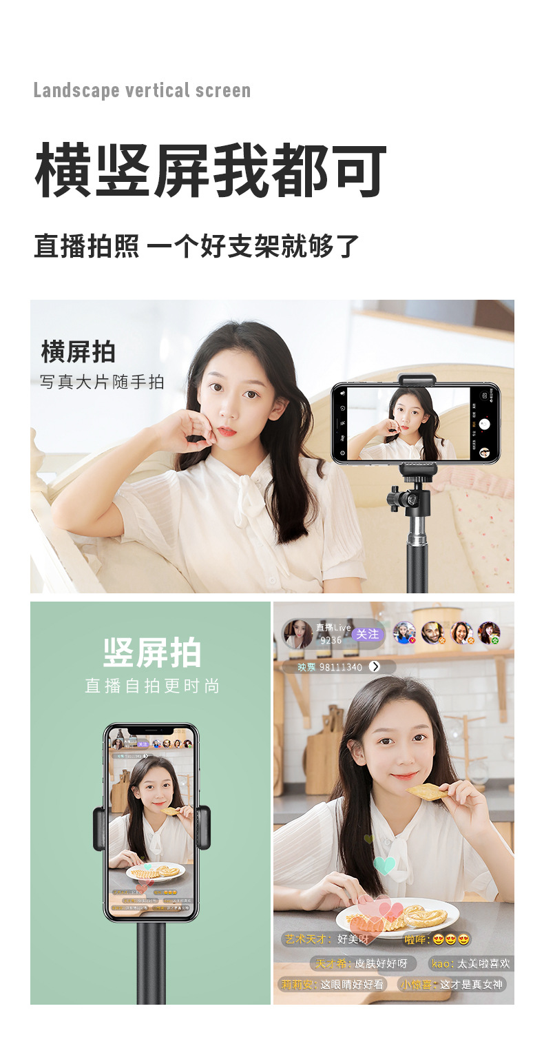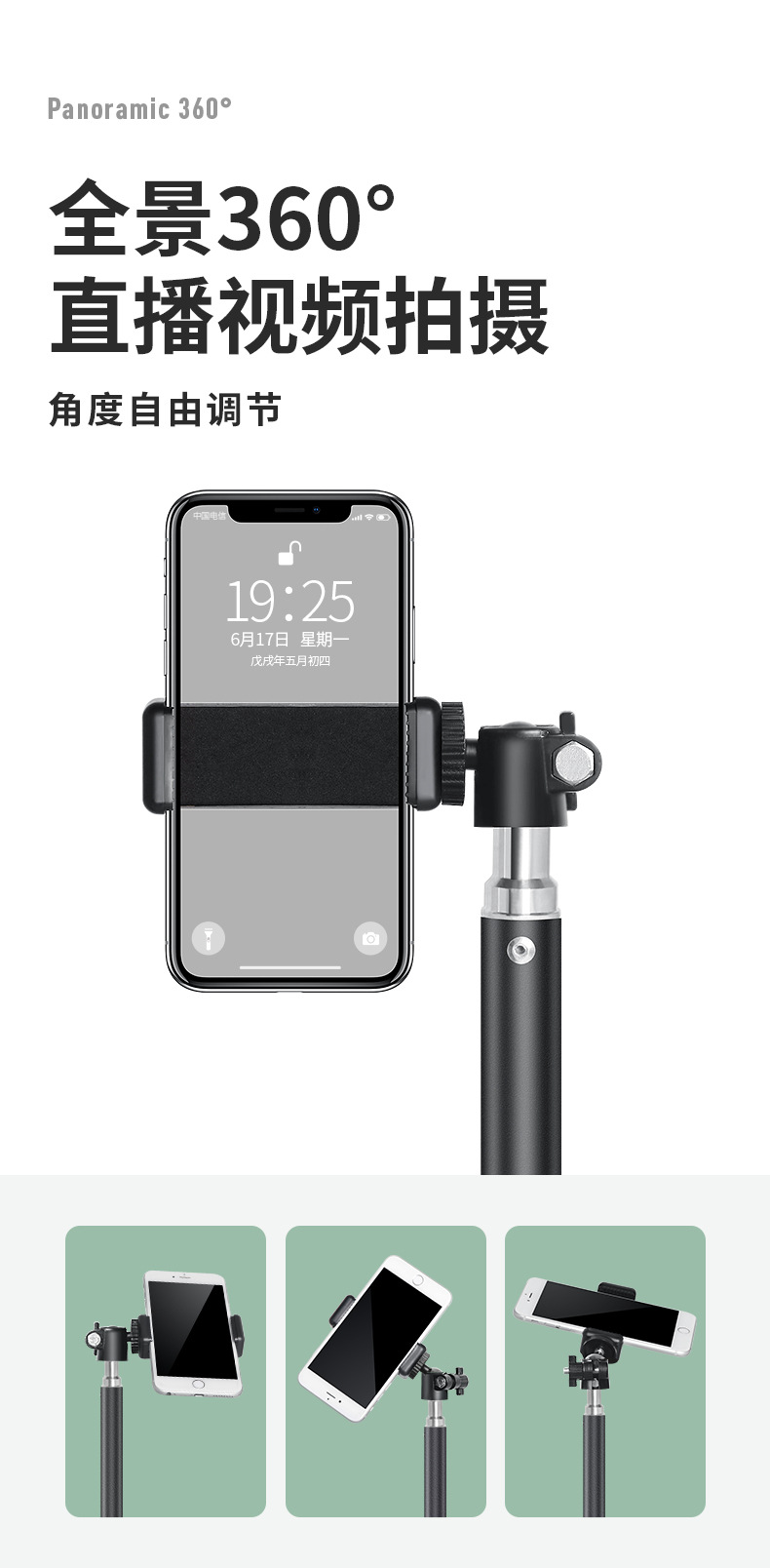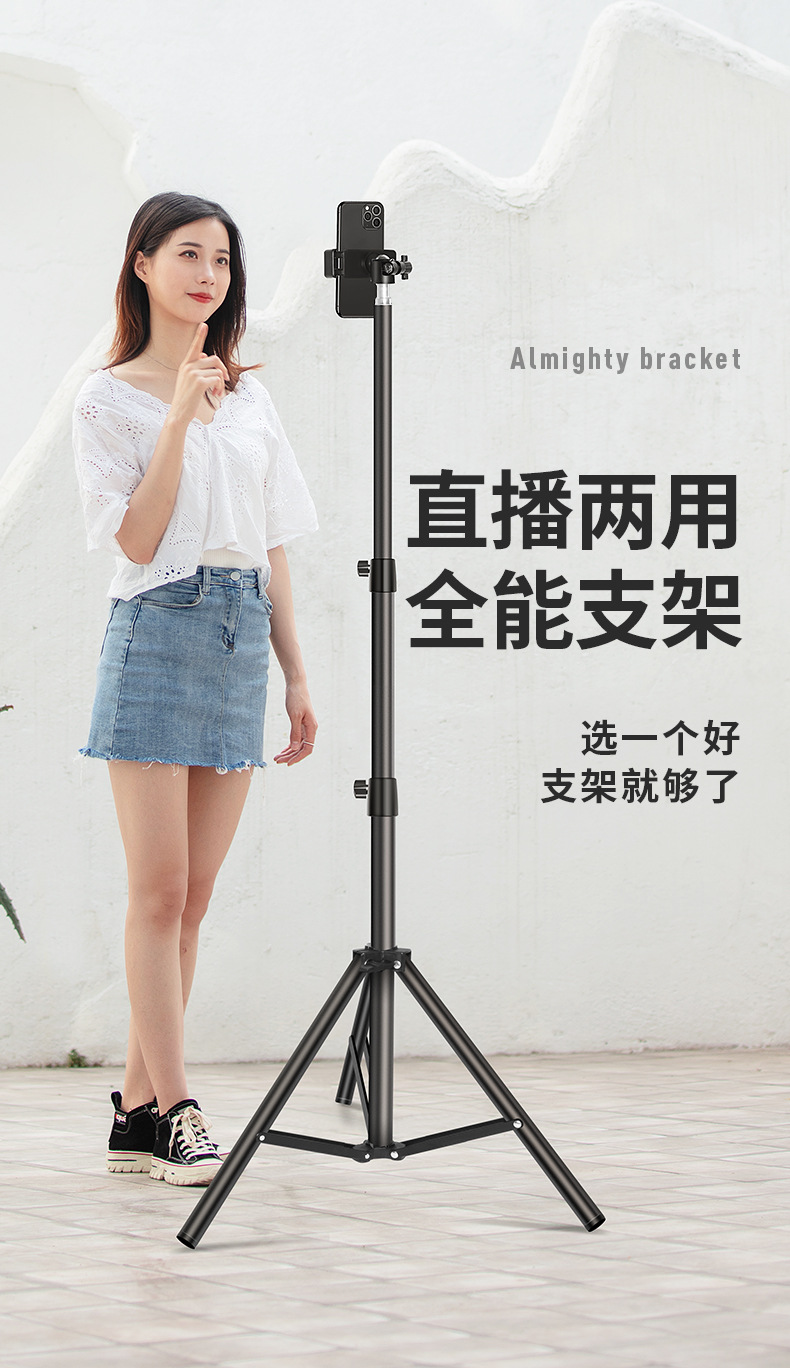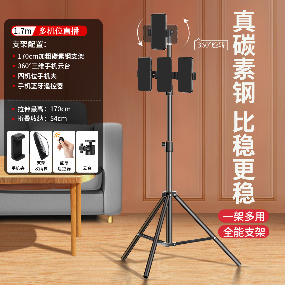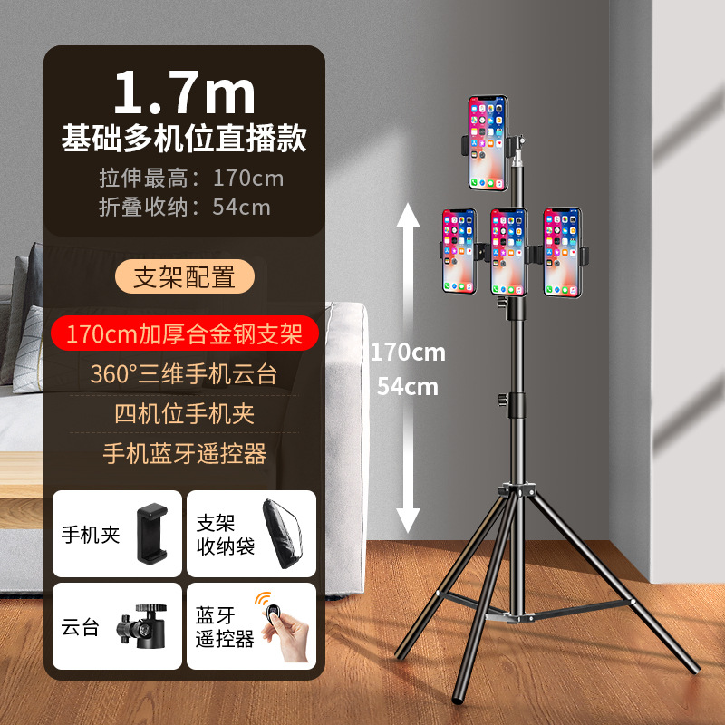 • 1.7M 두께의 탄소강 삼각대 [기본 모델 + 10inch 필라이트 + 셀카 + 4개의 카메라 위치로 구성된 완전한 라이브 방송 브래킷]