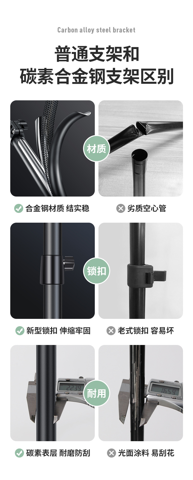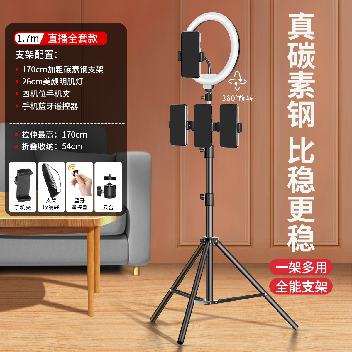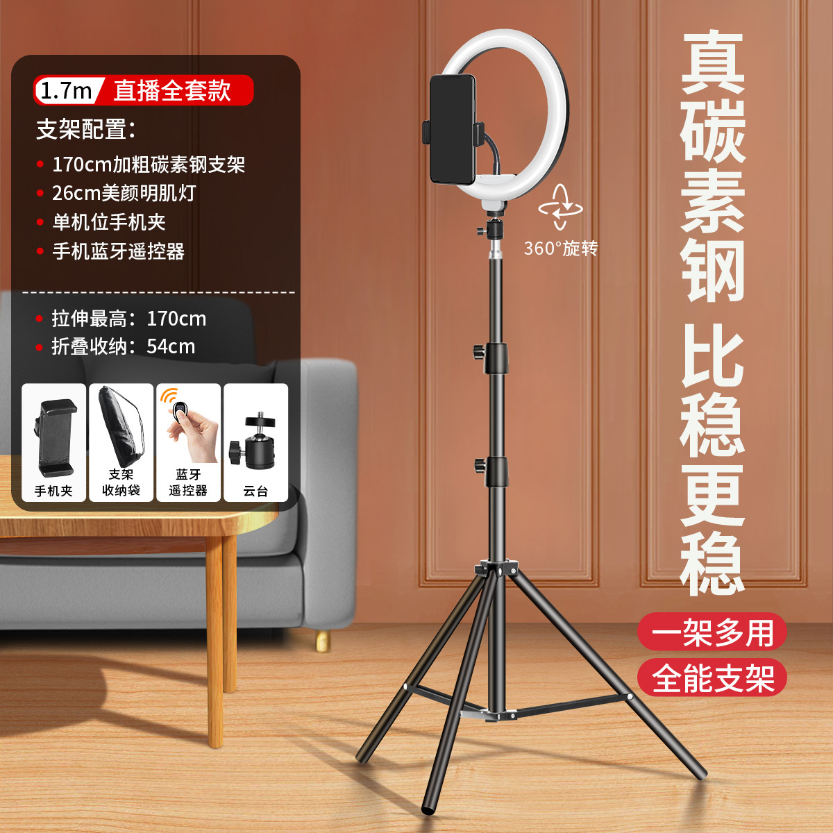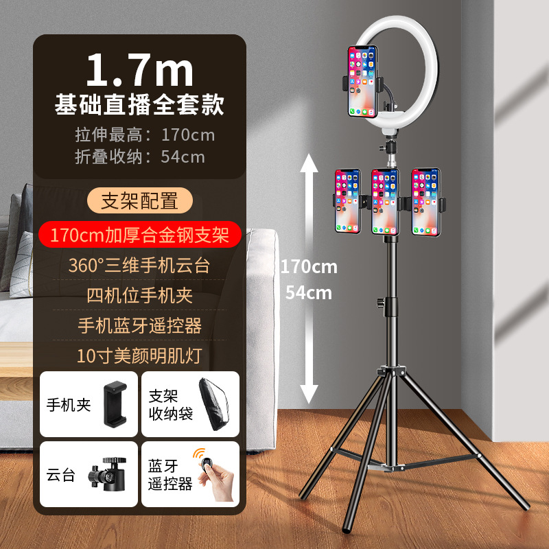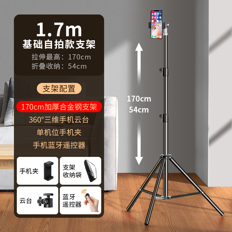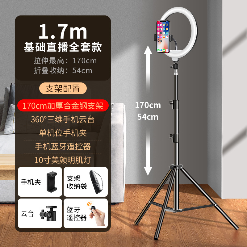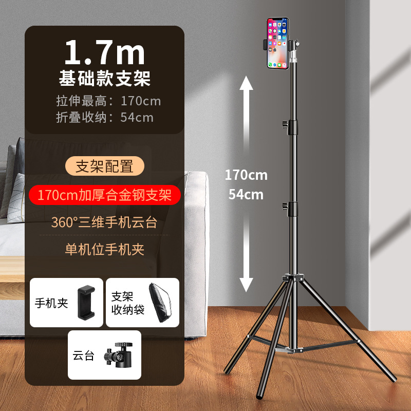 • 1.7m 두꺼운 탄소강 삼각대 [기본 + 10 인치 보조 조명 + 셀카 라이브 브래킷 전체 세트]]