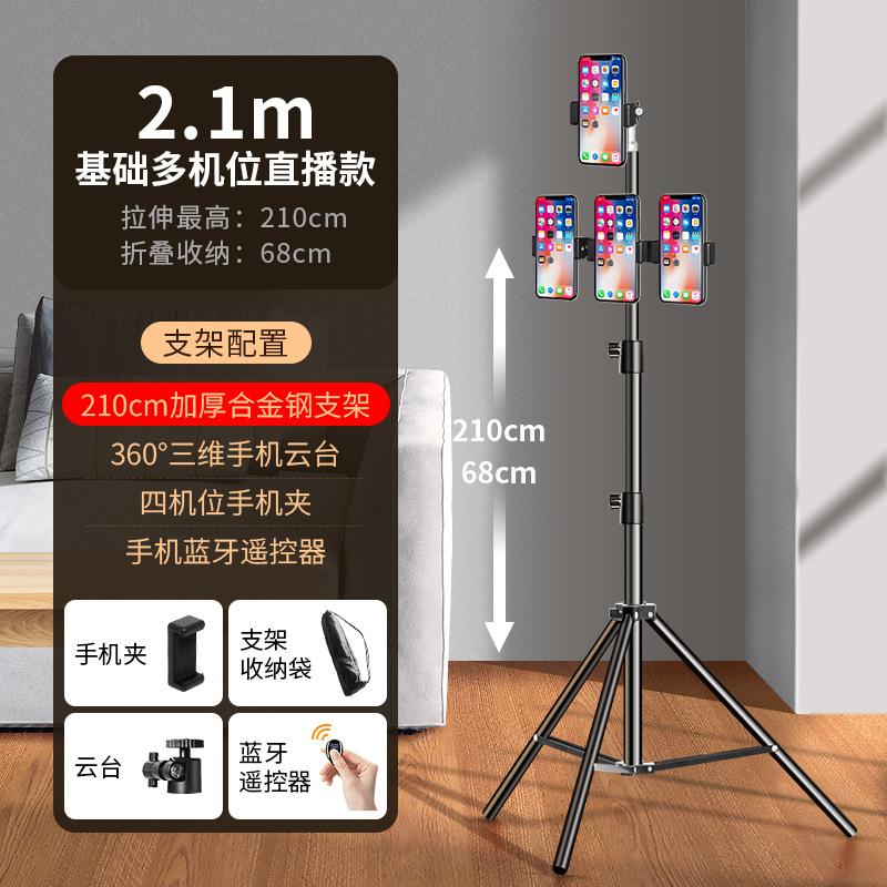 • 2.1m 두꺼운 합금강 삼각대 [기본 + 10 인치 보조 조명 + 셀프 타이머 + 멀티 머신 라이브 브래킷 풀 세트]