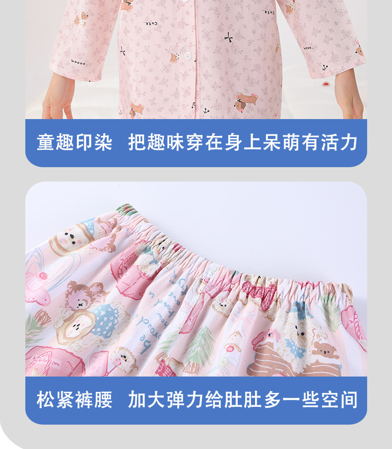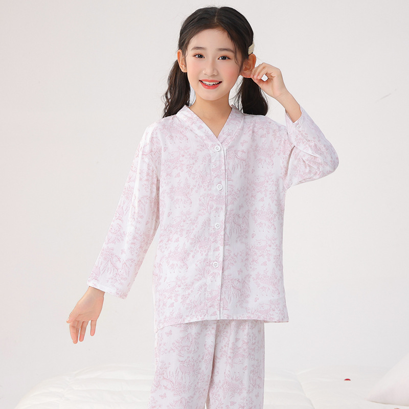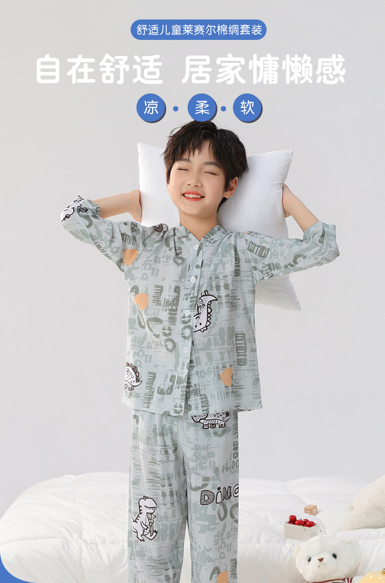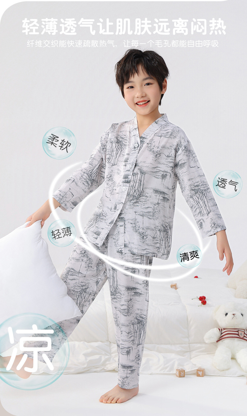 면 실크 잠옷, 아동복, 에어컨 의류, V 넥 긴팔 소년 소녀, 여름 의류, 아동복, 면 여름스토어 가기