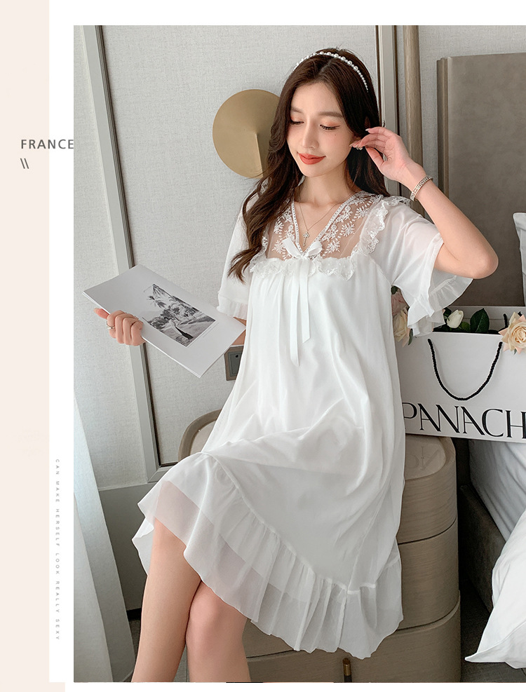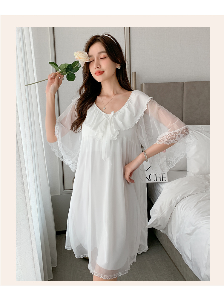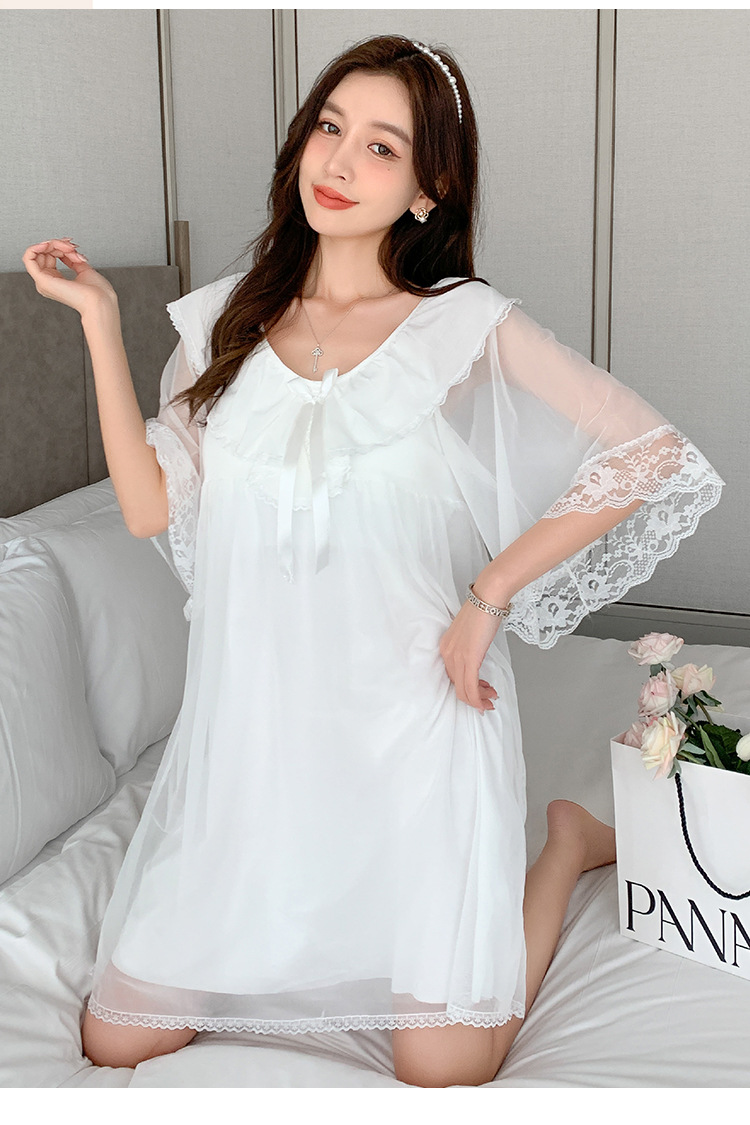 한국 스타일 잠옷 여자의 봄과 가을 얇은 공주 원피스 여름 달콤한 귀여운 섹시한 레이스 겉옷 달콤한 가정 옷스토어 가기