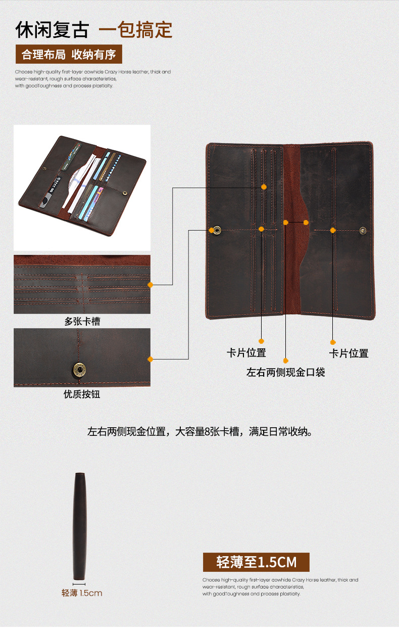 跨境热销男士钱包rfid多卡位休闲复古真皮钱包大容量搭扣手拿包男