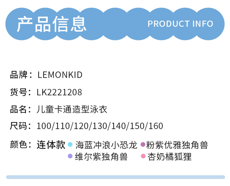 (1)商品名称:儿童卡通造型连体泳衣