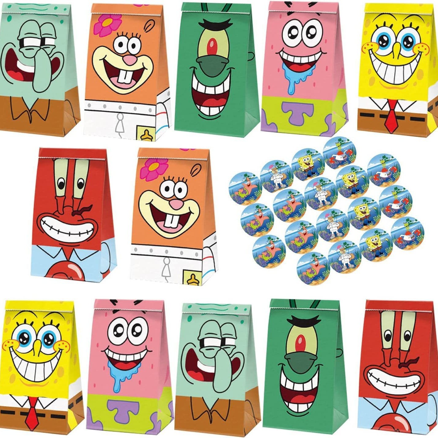 폭발적인 재고 아마존 스폰지 밥 테마 사탕 가방 스낵 가방 크래프트 종이 가방 장식 파티 선물 가방스토어 가기
