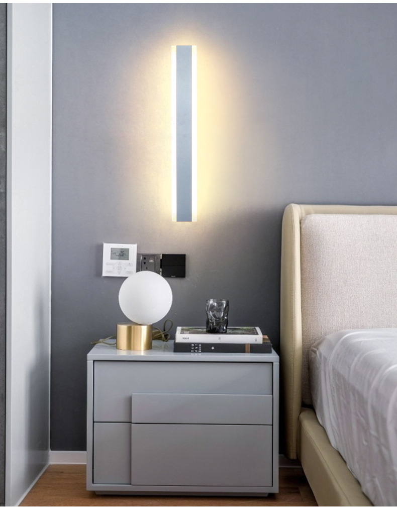 미니멀리스트 벽 램프 침실 침대 옆 램프 창조적 인 LED 스트립 현대 간단한 북유럽 거실 벽 통로 램프
