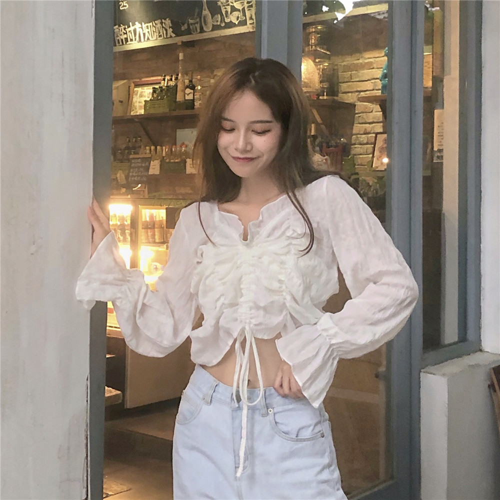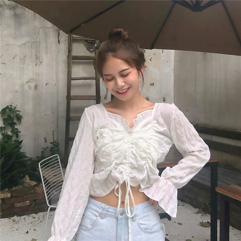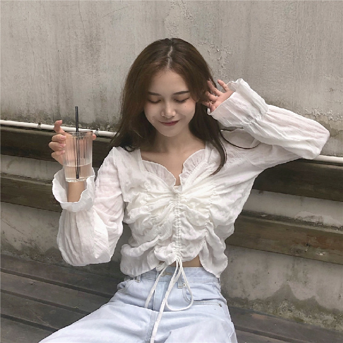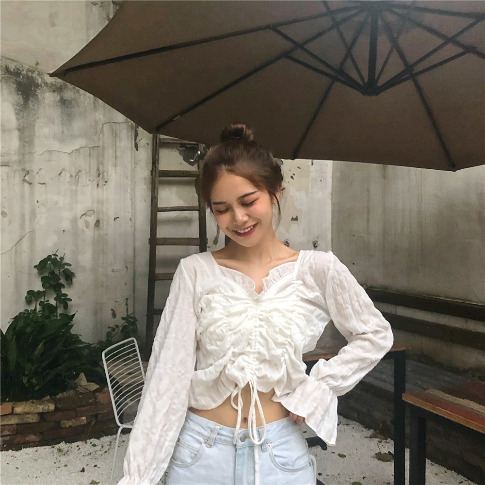 슈퍼 페어리 탑 틈새 디자인 센스 외국 스타일 가디건 스몰 셔츠 여성용 봄과 여름 모든 매치 자외선 차단제 셔츠 마스터리 칼라 본 티셔츠스토어 가기
