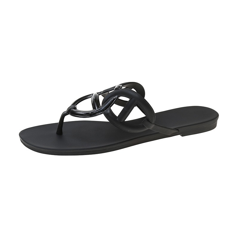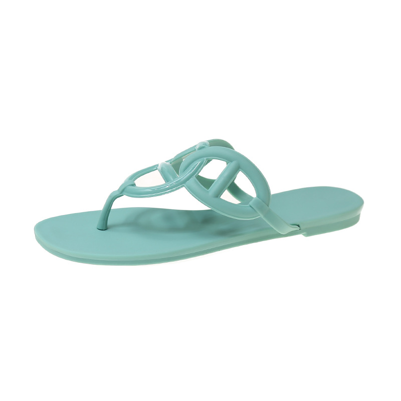 새로운 돼지 코 플립 플롭 여성용 여름 유럽과 미국 인터넷 인기 플랫 캐주얼 H-체인 샌들 슬리퍼