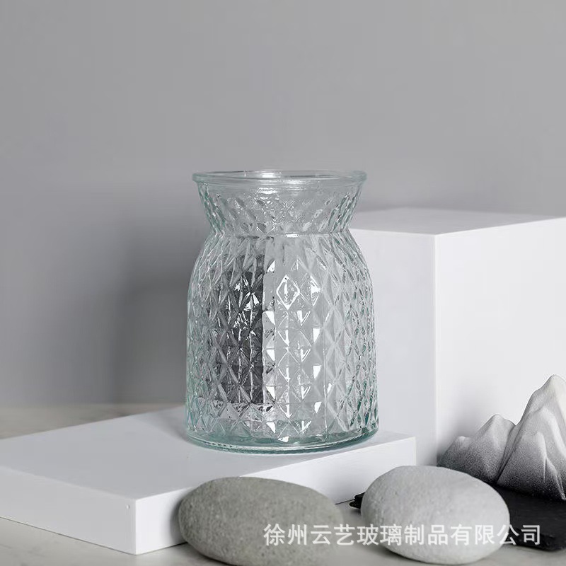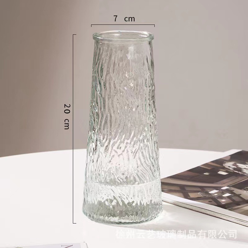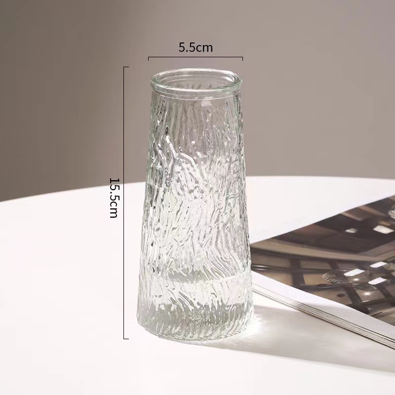 스타일 빙하 패턴 유리 꽃병 간단한 투명 수생 꽃 꽃꽂이 꽃 세트 거실 식탁 장식 장식품