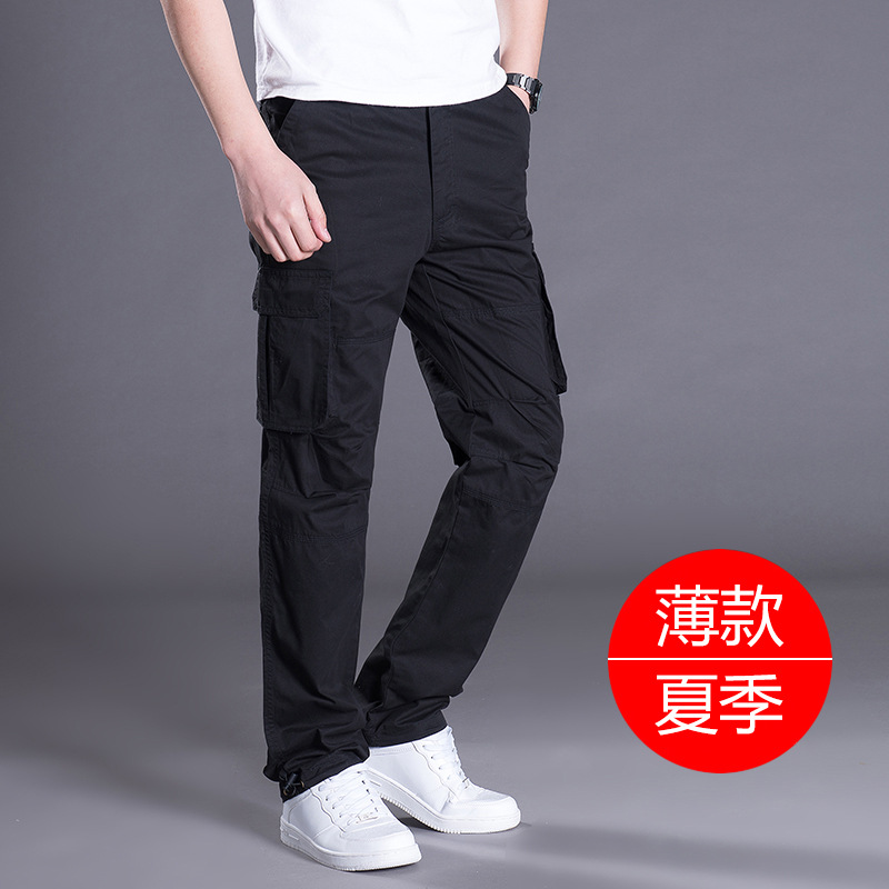 가을 겨울 두꺼운 멀티 포켓 작업복 바지 남성용 루즈핏 대형 사이즈 야외 스포츠 긴바지 순면 작업복 캐주얼 바지