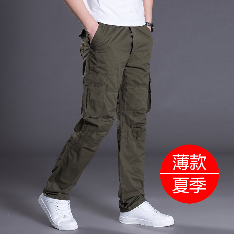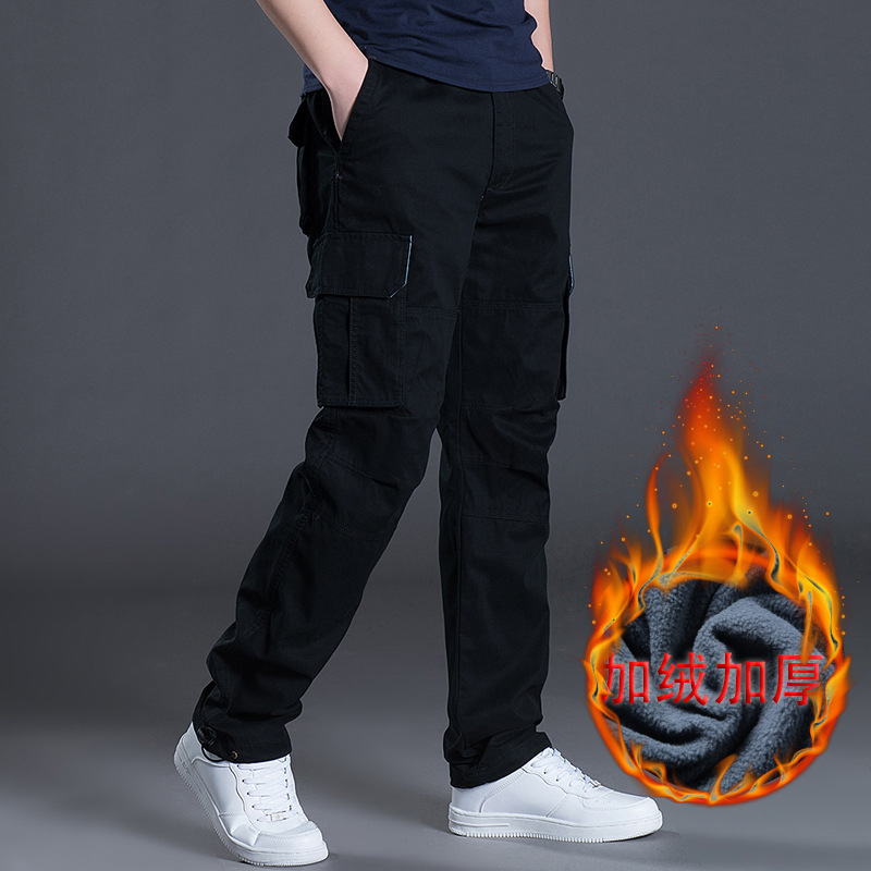 가을 겨울 두꺼운 멀티 포켓 작업복 바지 남성용 루즈핏 대형 사이즈 야외 스포츠 긴바지 순면 작업복 캐주얼 바지스토어 가기