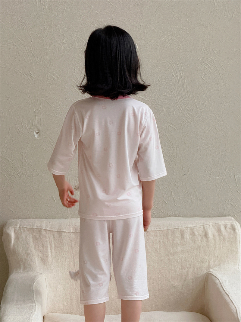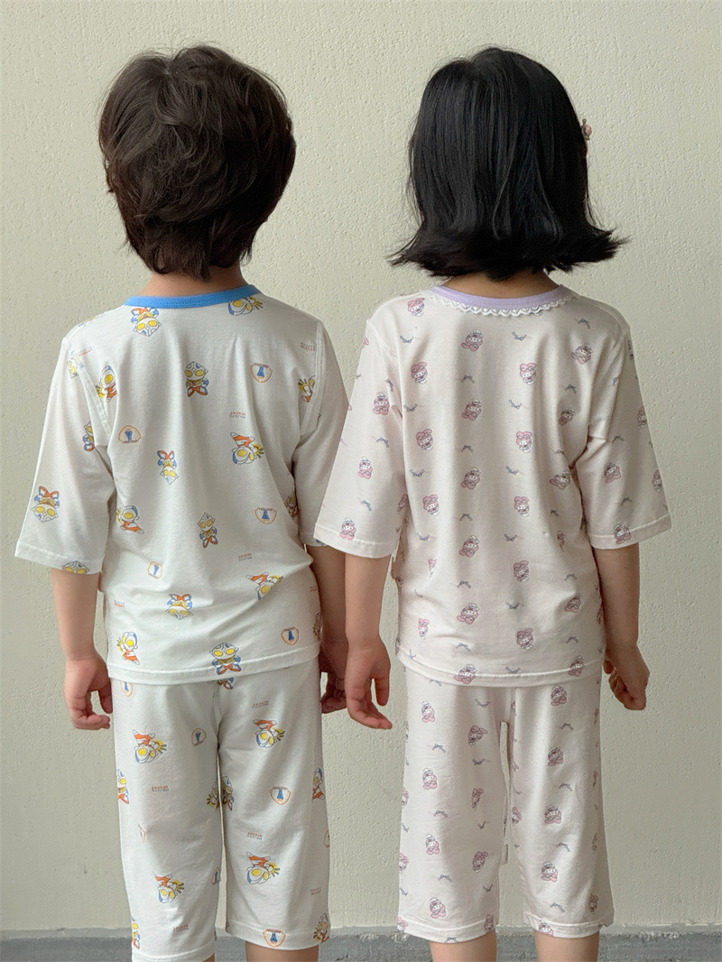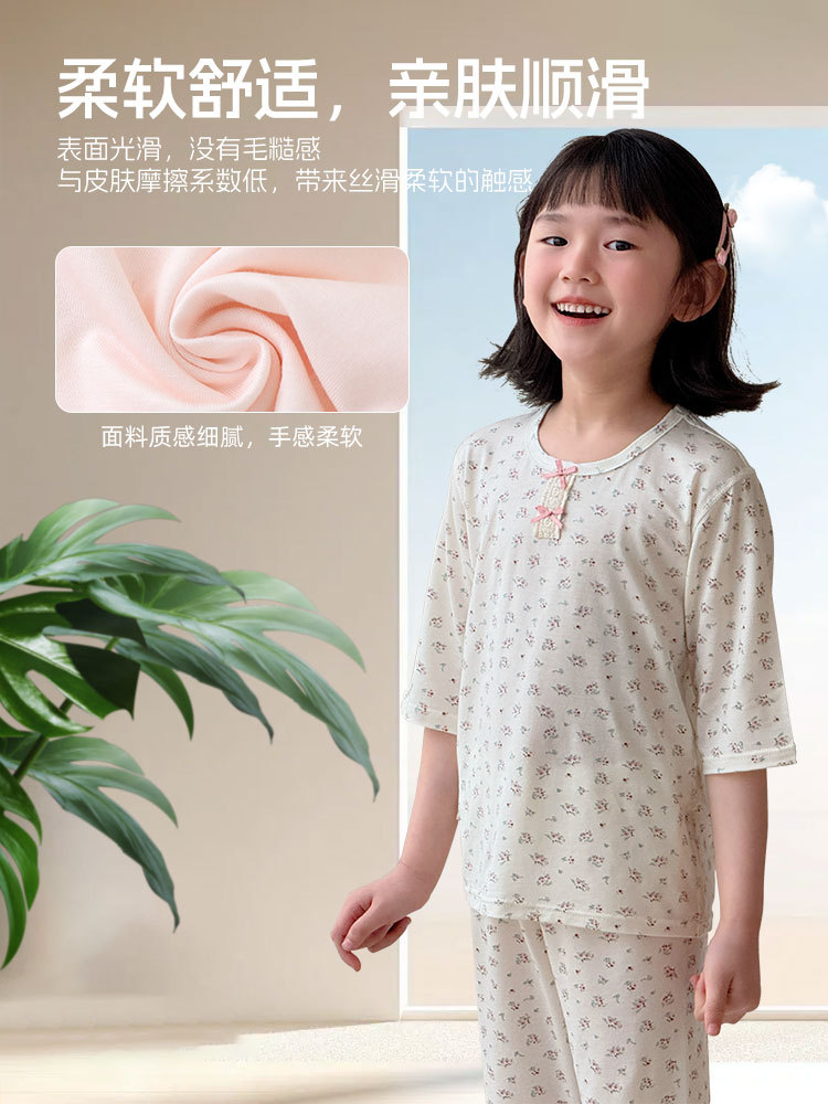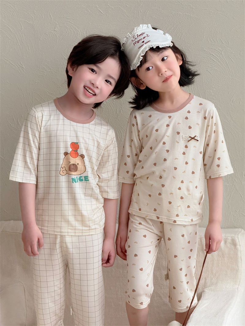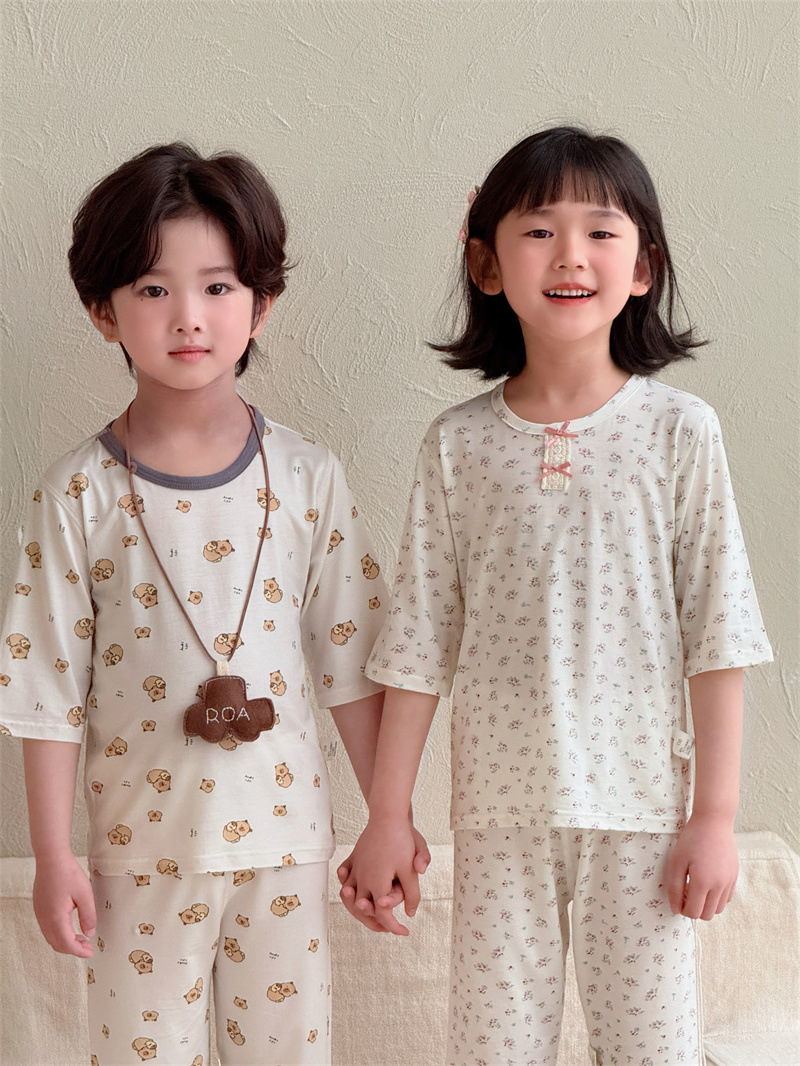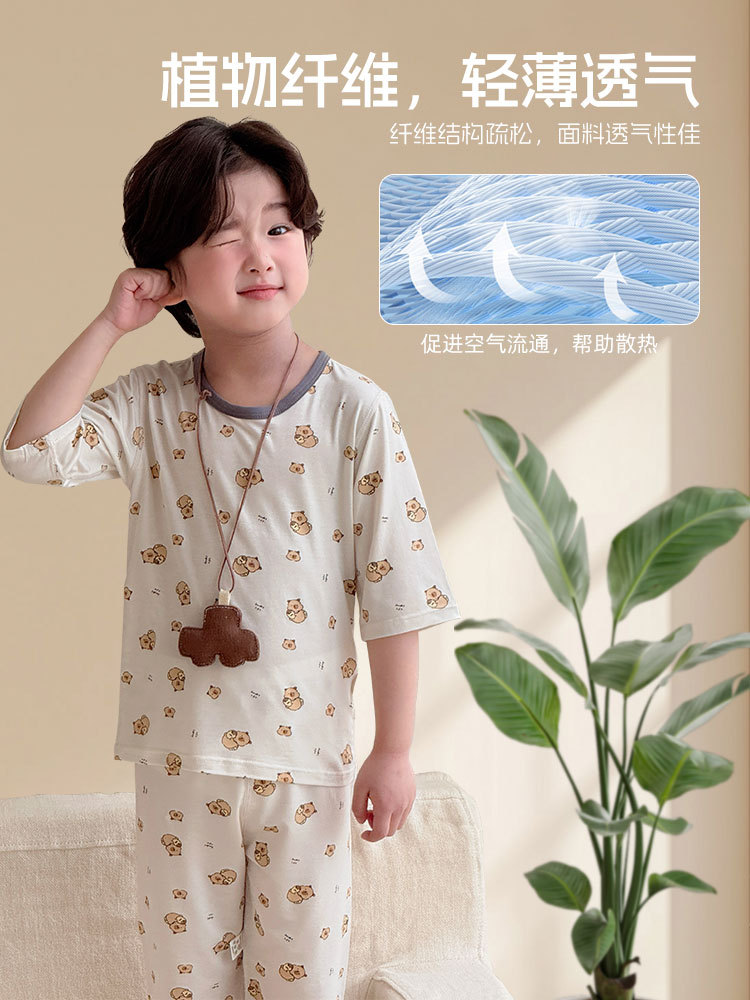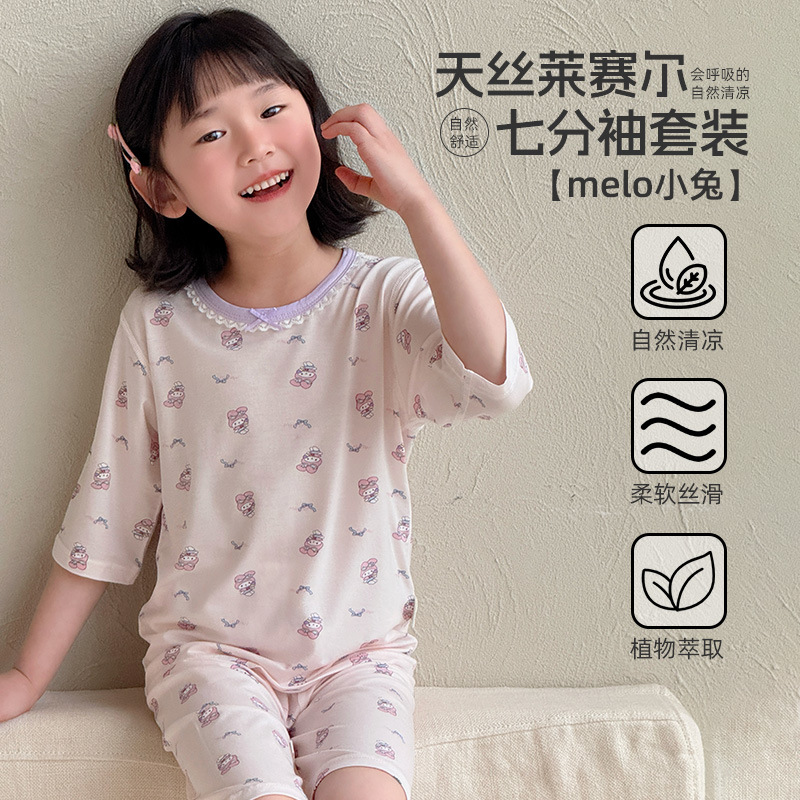 어린이 여름 텐셀 Lyocell 소매 세트 소년과 소녀 아기 얇은 홈 옷 파자마 에어컨 옷