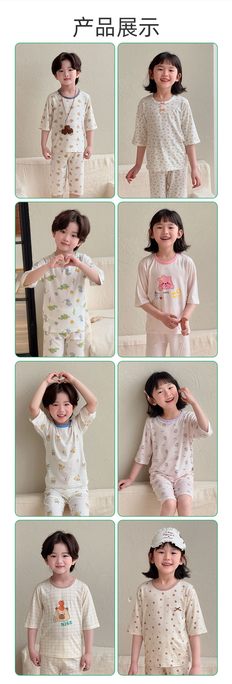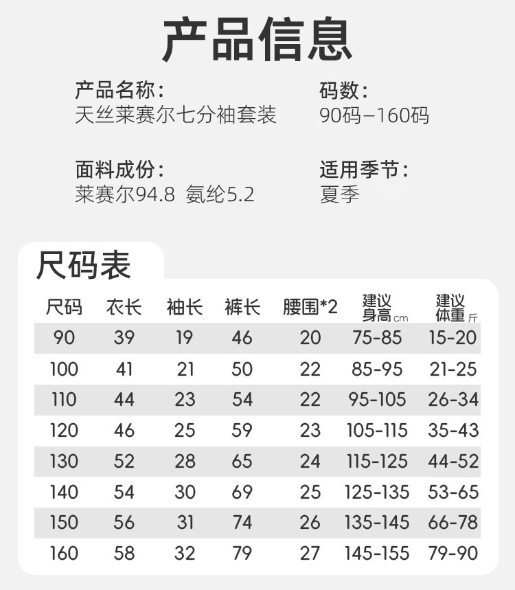 어린이 여름 텐셀 Lyocell 소매 세트 소년과 소녀 아기 얇은 홈 옷 파자마 에어컨 옷스토어 가기