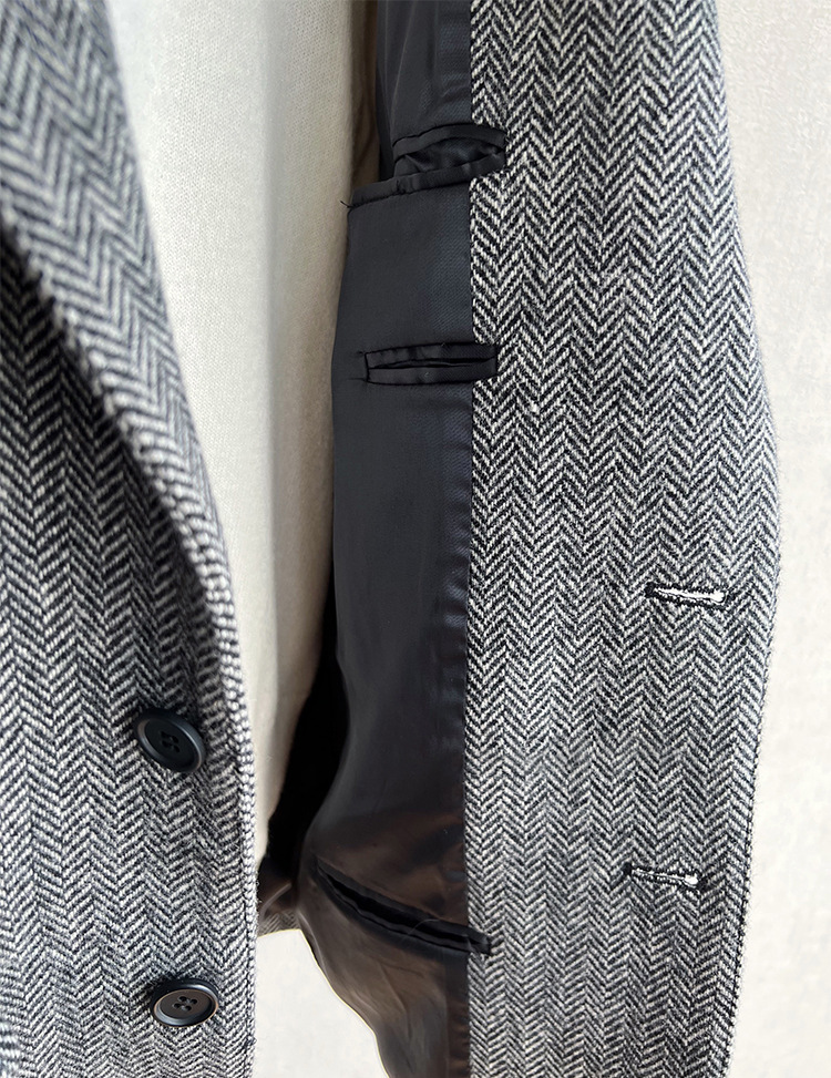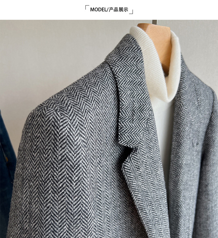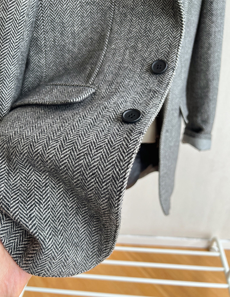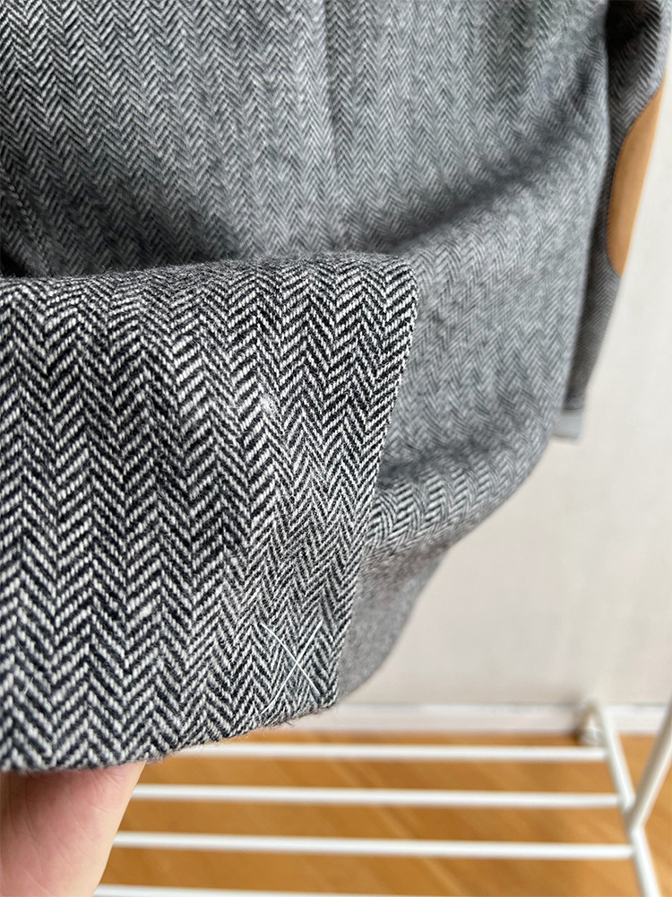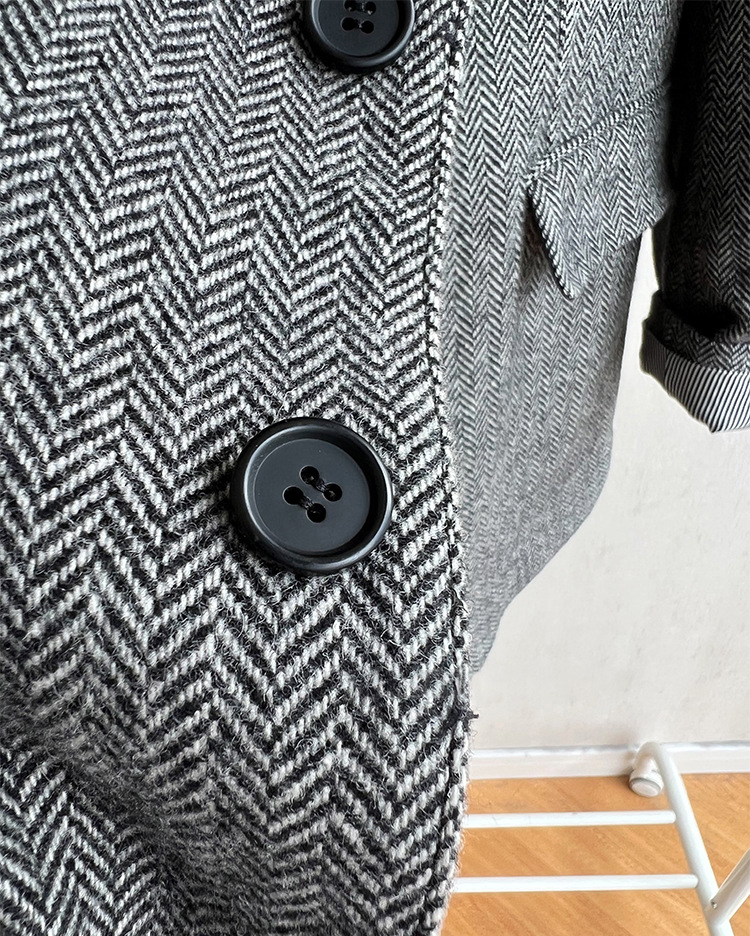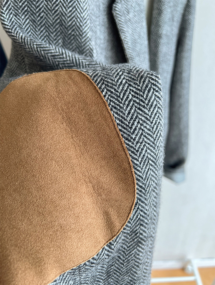 스팟 봄, 가을 캐주얼 원사 염색 헤링본 패턴 팔꿈치 및 가죽 복고풍 울 정장 재킷 여성용스토어 가기