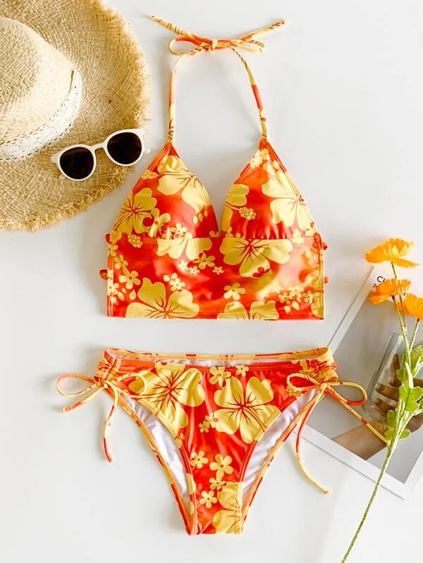 아마존 유럽 및 미국 수출용 여성 프린트 하이웨이스트 비키니 분리형 수영복, 고탄력 스포츠 스타일스토어 가기