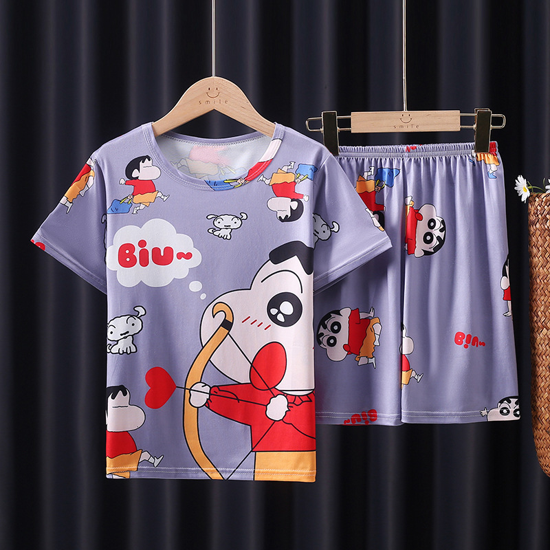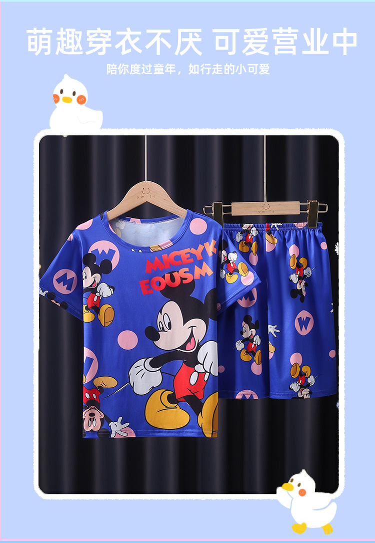여아 잠옷 여름 반팔 캐주얼 투피스 세트 남아 만화 귀여운 중간 및 큰 어린이 가정복 여름 패션스토어 가기