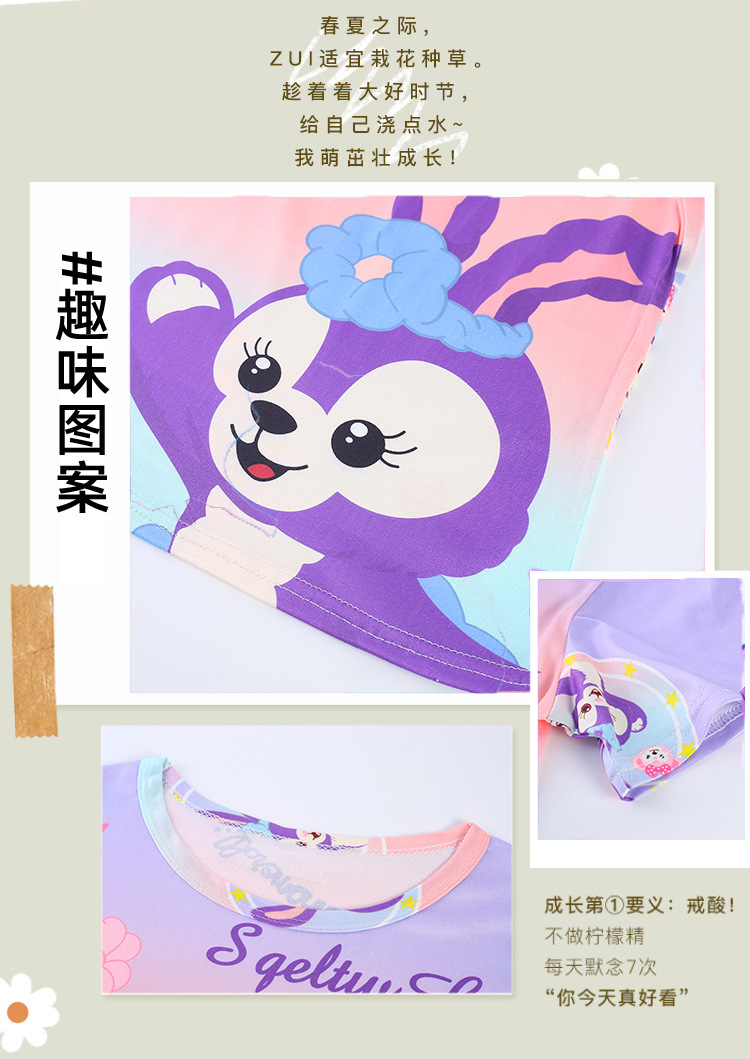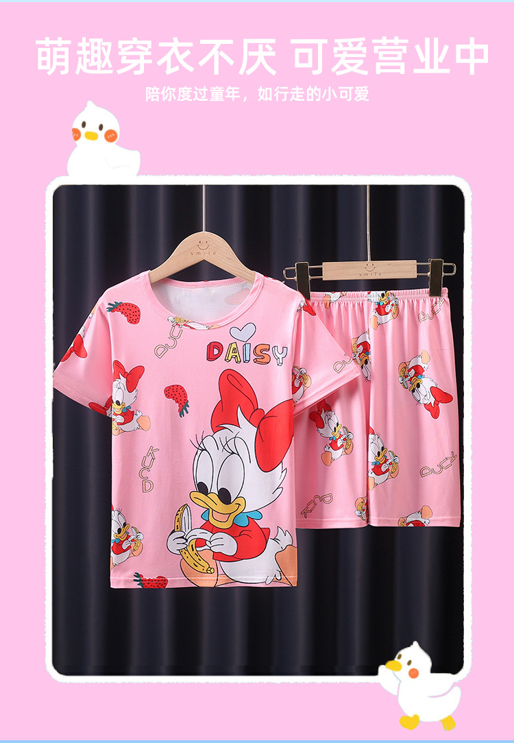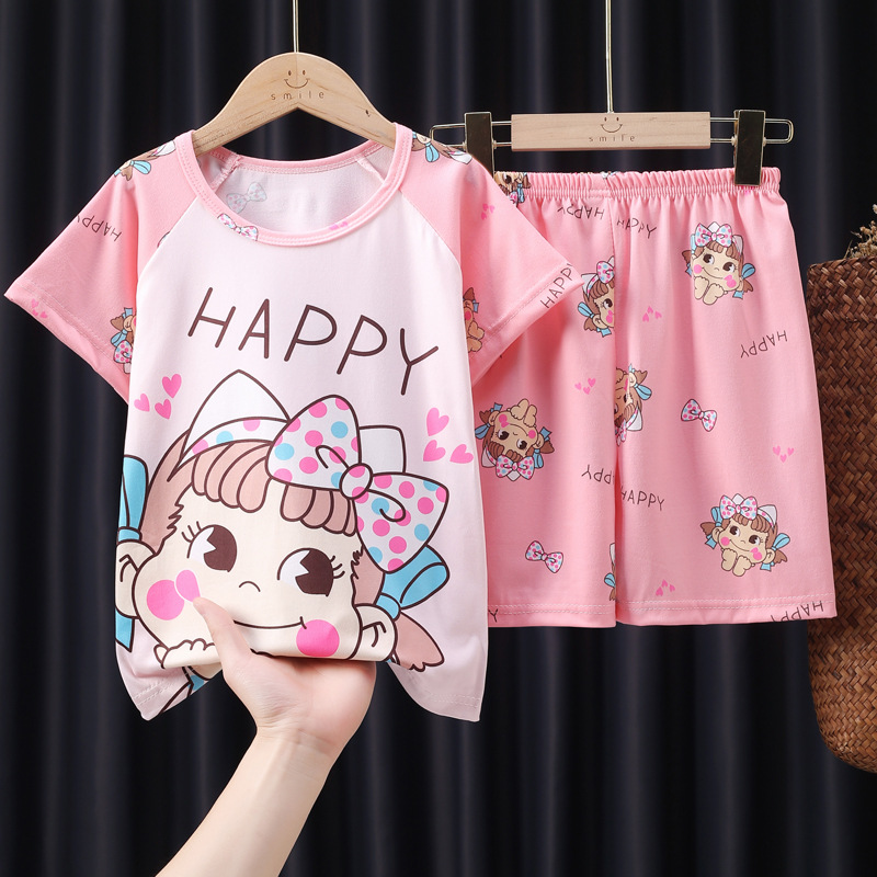여아 잠옷 여름 반팔 캐주얼 투피스 세트 남아 만화 귀여운 중간 및 큰 어린이 가정복 여름 패션