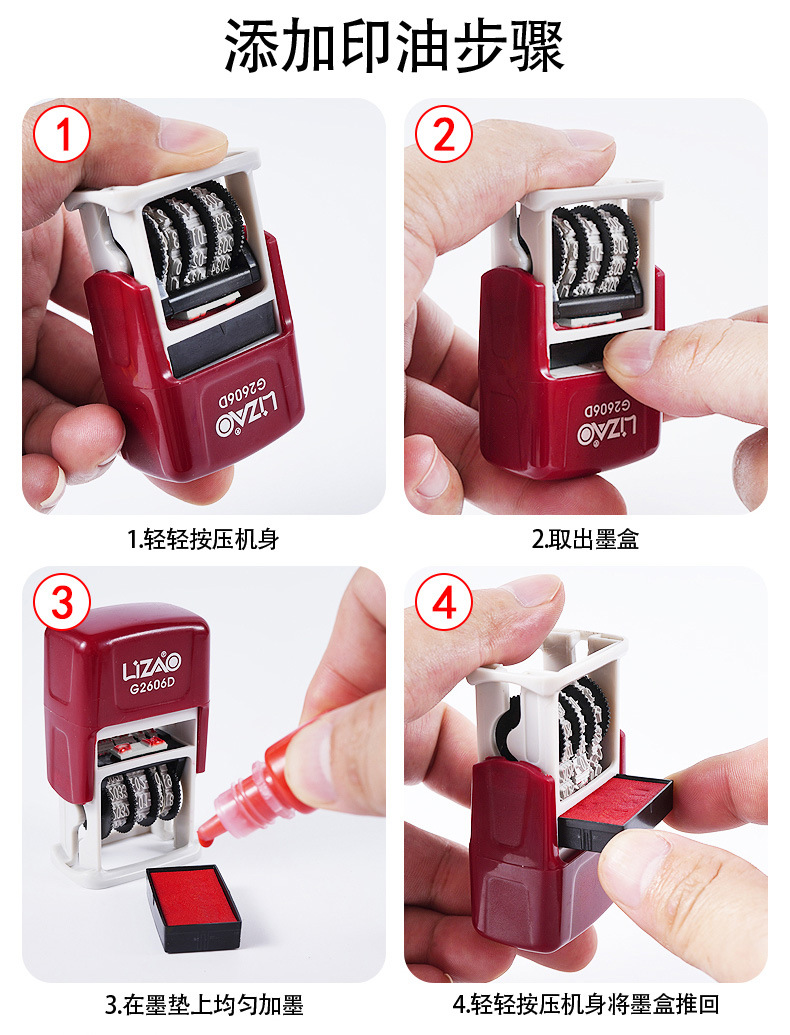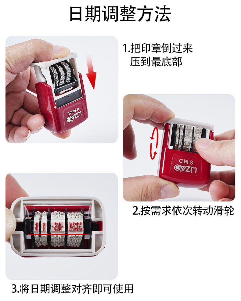 잉크 내장형 날짜 스탬프, 누름식 자동 뒤집기, 연월일 조정 가능 스탬프, 재료 도매 제조업체스토어 가기