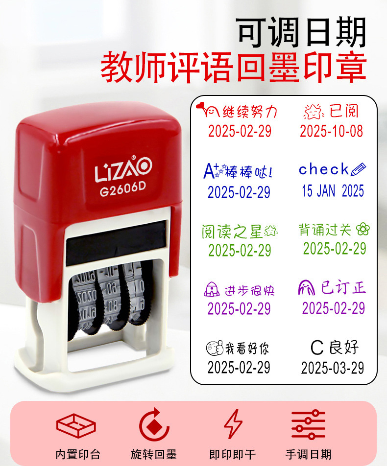 잉크 내장형 날짜 스탬프, 누름식 자동 뒤집기, 연월일 조정 가능 스탬프, 재료 도매 제조업체