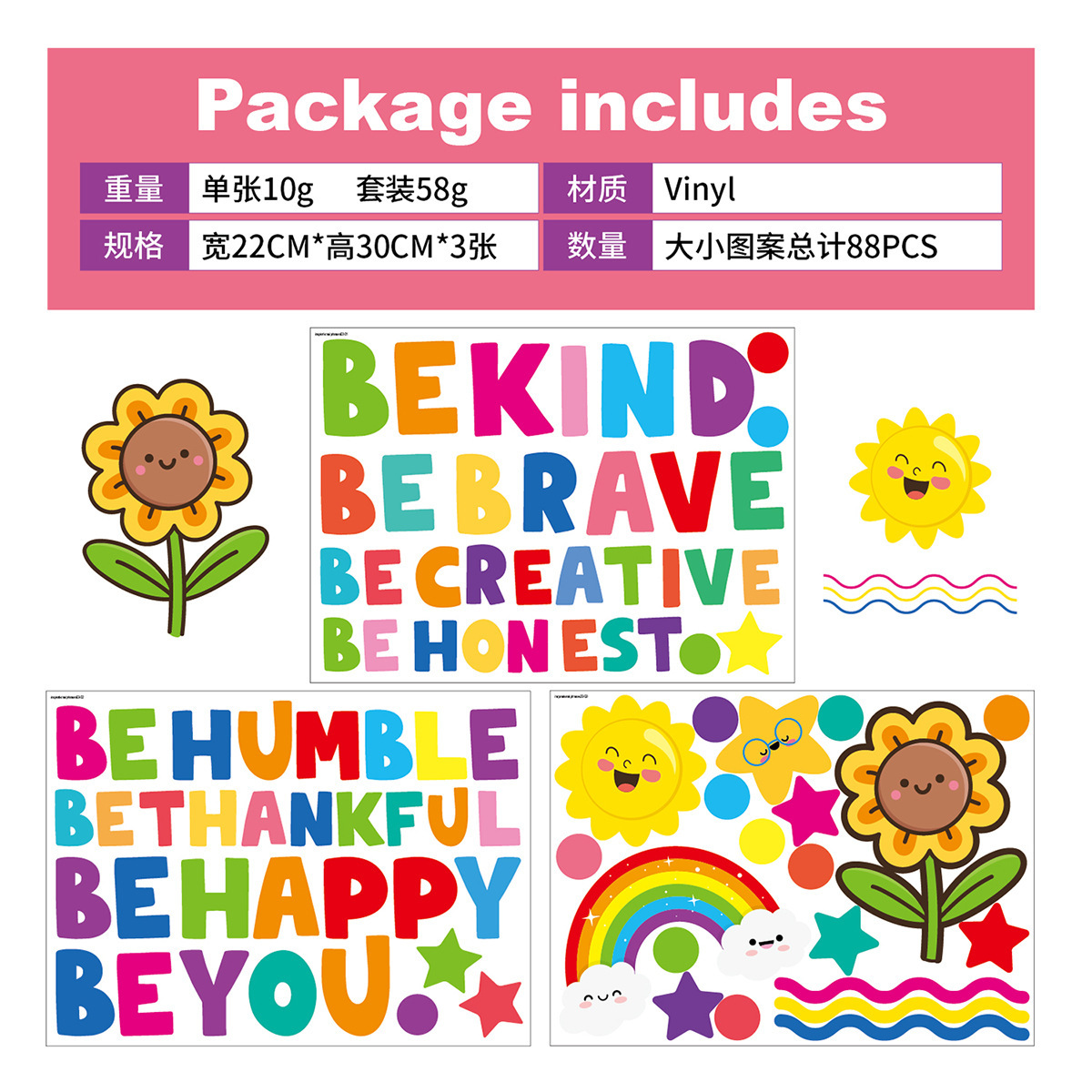 국경을 넘는 다채로운 영감을 주는 벽 스티커, 어린이 방 및 유치원 장식용 문자 및 슬로건, 만화 PVC 자체 접착 문자 벽 스티커