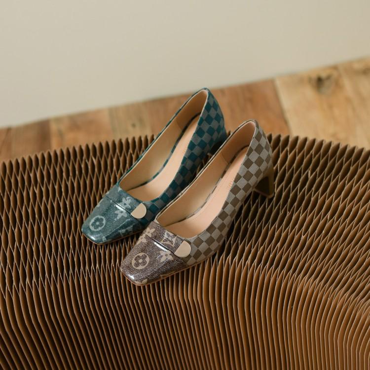 33 스몰 사이즈 쇠고기 특허 가죽 숙녀 신발 복고풍 영국 격자 무늬 색상 매칭 2022 봄 낮은 신발 W714스토어 가기