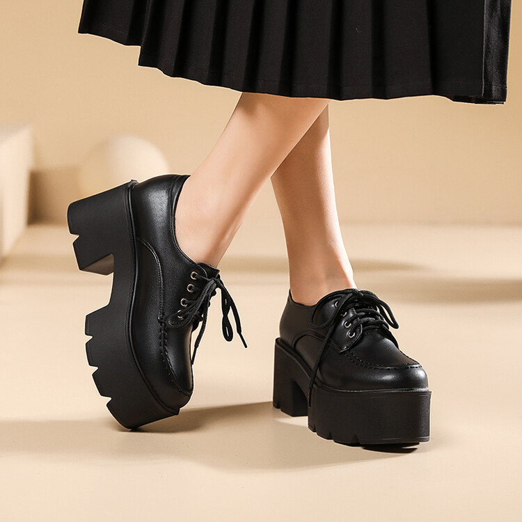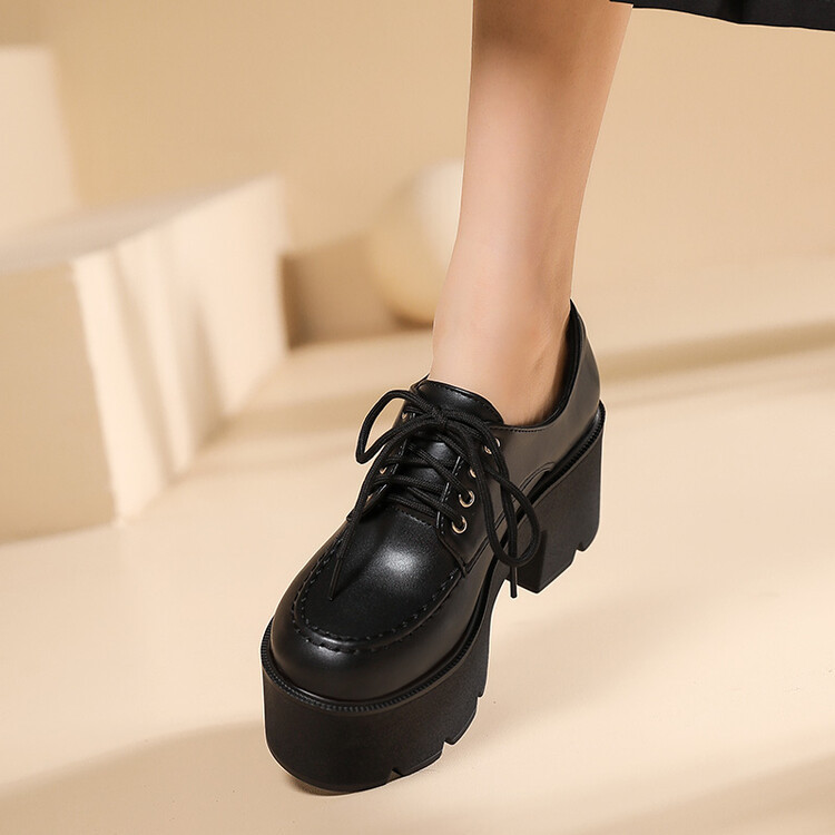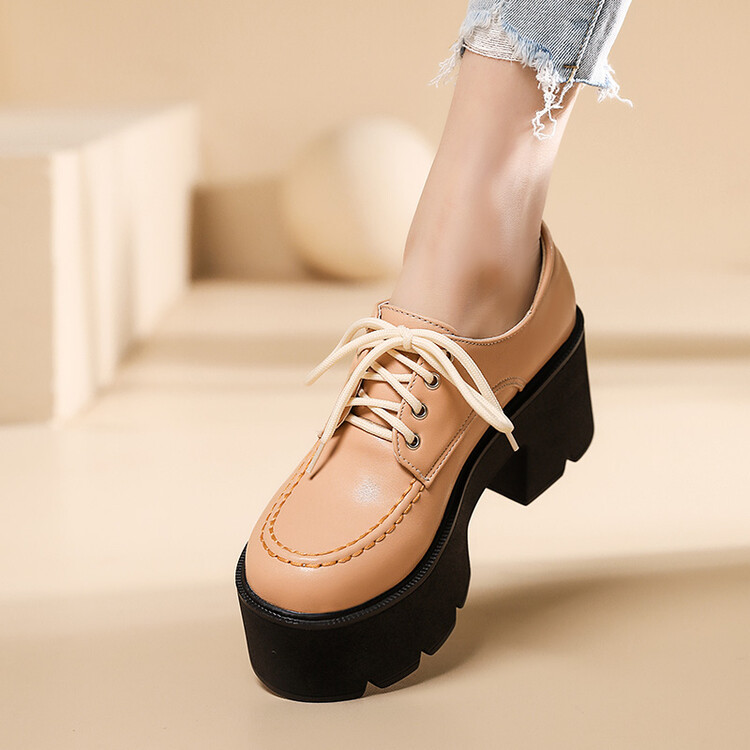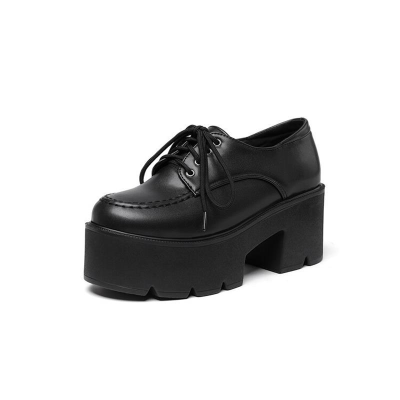 40-43 이른 봄 모든 경기 레트로 두꺼운 밑창 플랫폼 케이크 전면 레이스 업 여성용 얕은 입 싱글 신발 로퍼 W811