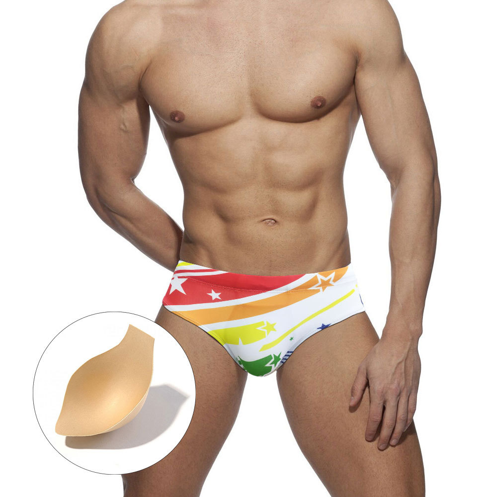 UXH 새로운 재고 화이트 안티 당황 성인 삼각형 수영 트렁크 컵 간단한 패션 컬러 남성용 수영 트렁크스토어 가기
