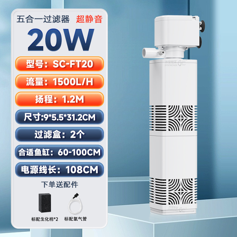 • 스퀘어 5 in 1 20W 2 노트 (여과/대변 흡입/산소 공급/파도 만들기/펌핑)