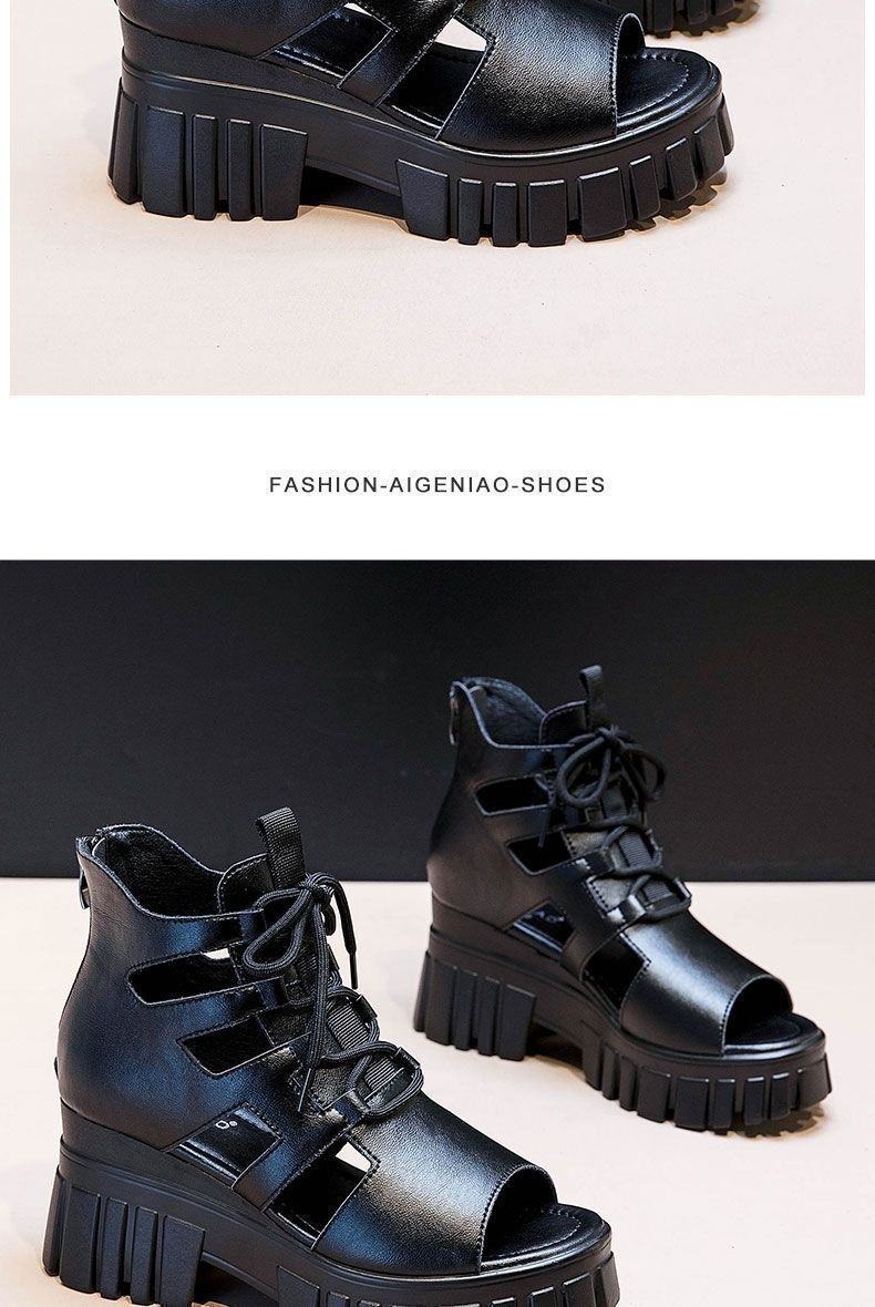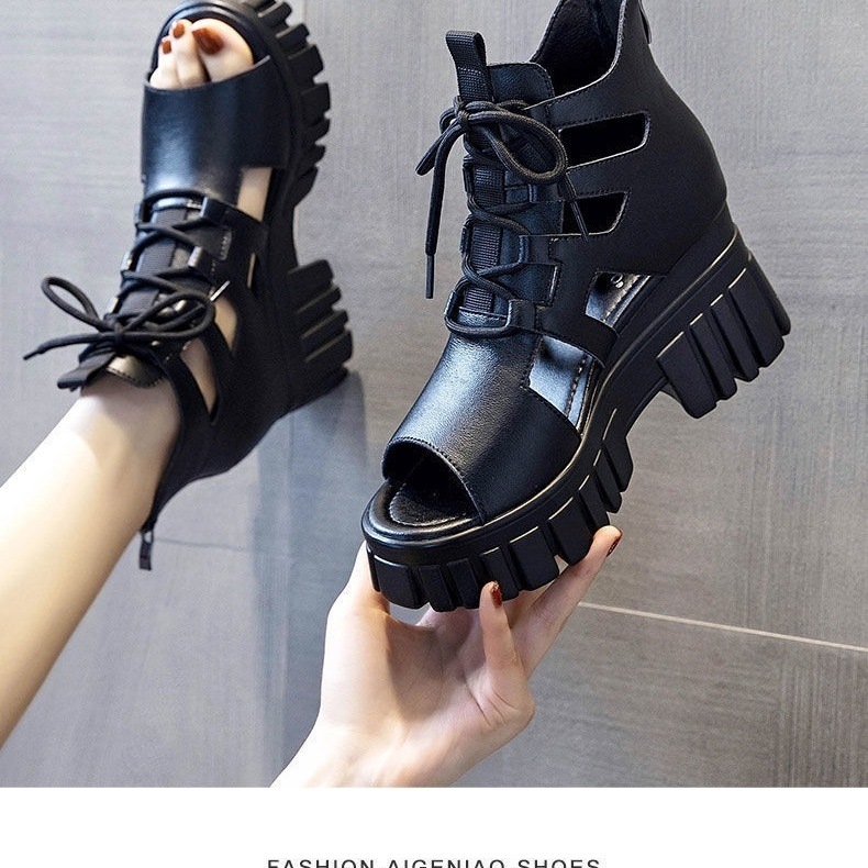 여름 중공 통기성 슬리밍 로마 샌들 여성용 2022 새로운 모든 매치 하이힐 두꺼운 밑창 샌들 웨지 플랫폼 신발스토어 가기