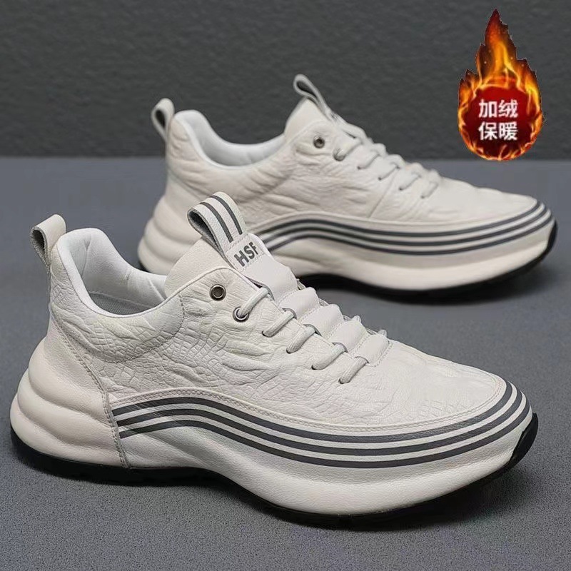 남성 신발 2025 봄 신작 정품 가죽 흰색 신발 남성 가죽 밑창 스포츠 캐주얼 신발 남성용 높이 증가 아빠 가죽 신발